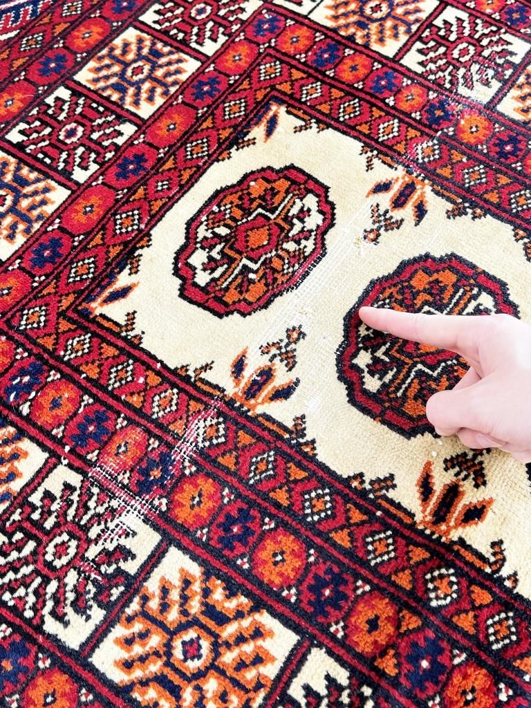 ラグはクリーニング業者にて洗浄後に弊店にて消臭スプレー等で対策をしておりますが、クリーニングでは落ち切らない毛やゴミ、汚れや臭いがございます。気になる方はご遠慮くださいませ。