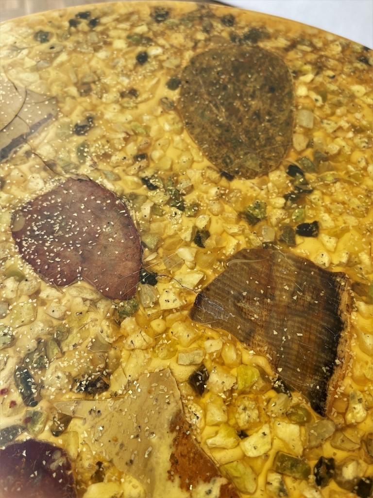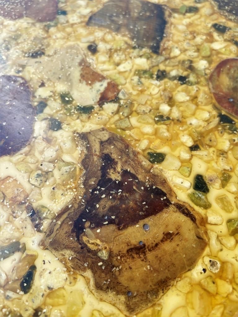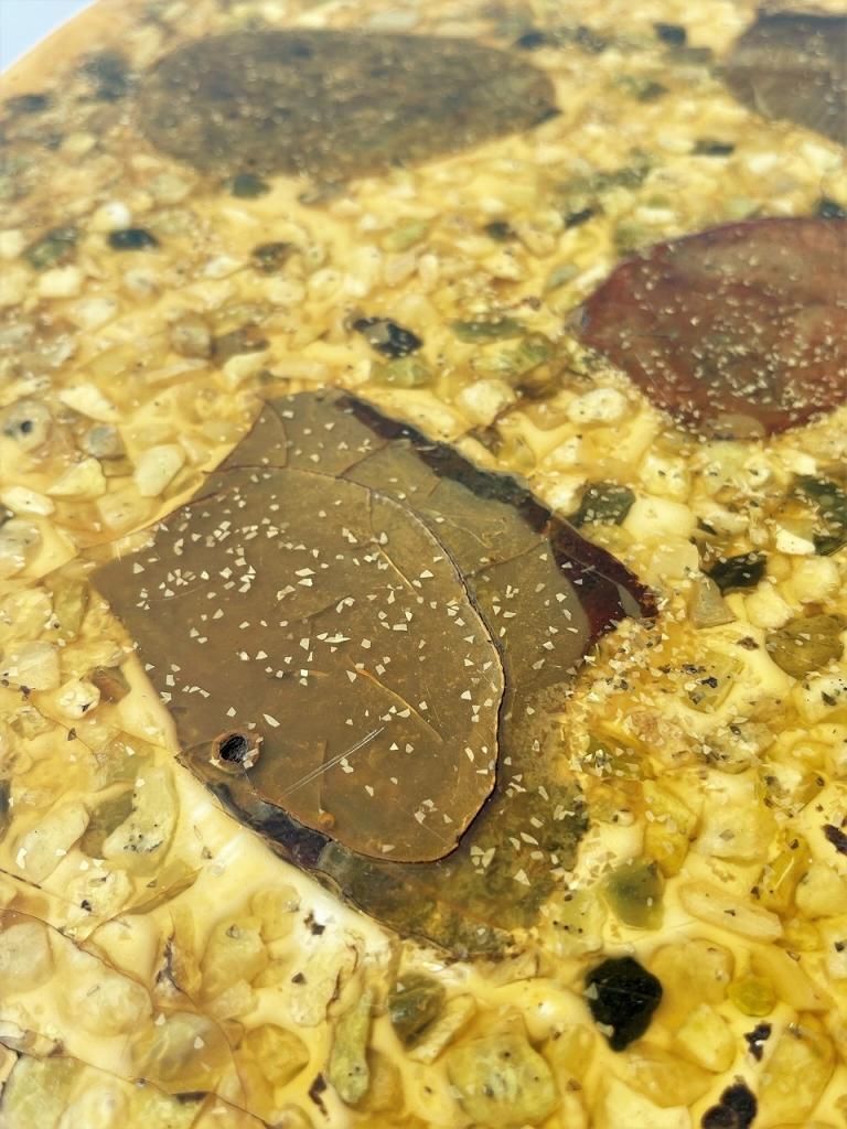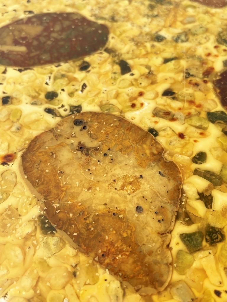 艶のあるストーンがレジンで固められた天板。