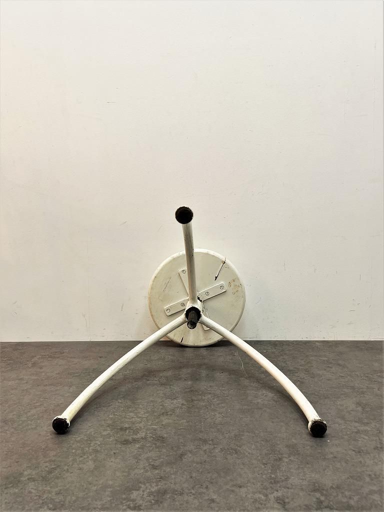 3本足のすっきりとしたシルエットで、座面を回転させることで、高さの調節が可能な作りです。