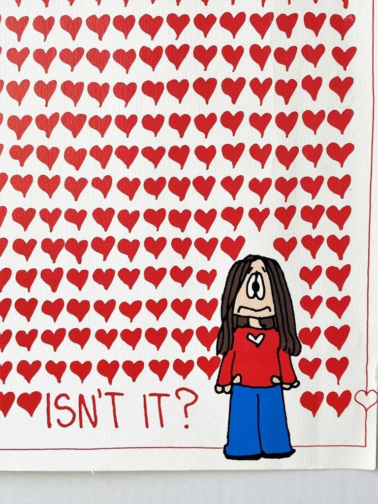 こちらのポスターは無数のハートとcathyの少し悲しげな表情との対比が特徴的な一枚です。