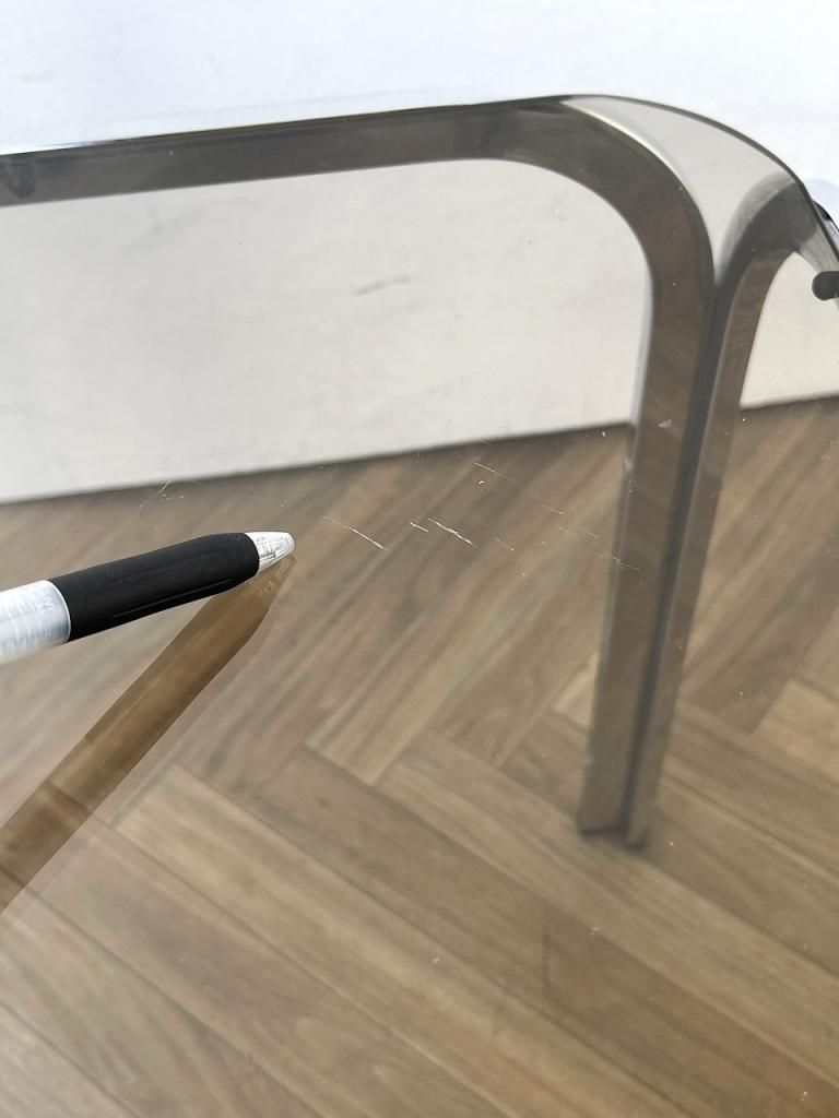 クロームシルバーのベースにスモークガラス天板の組み合わせ。