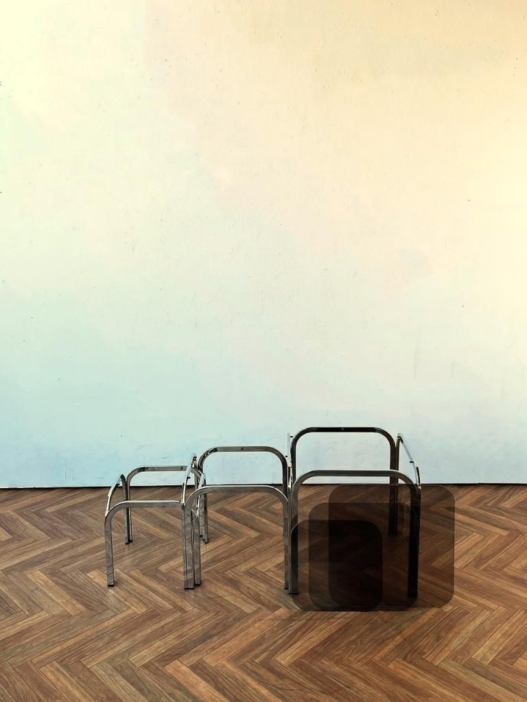 • 1960's ヴィンテージ スモークガラストップ ネスティングテーブル※近畿圏内のみの発送/店頭お引取り限定販売