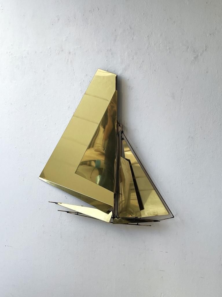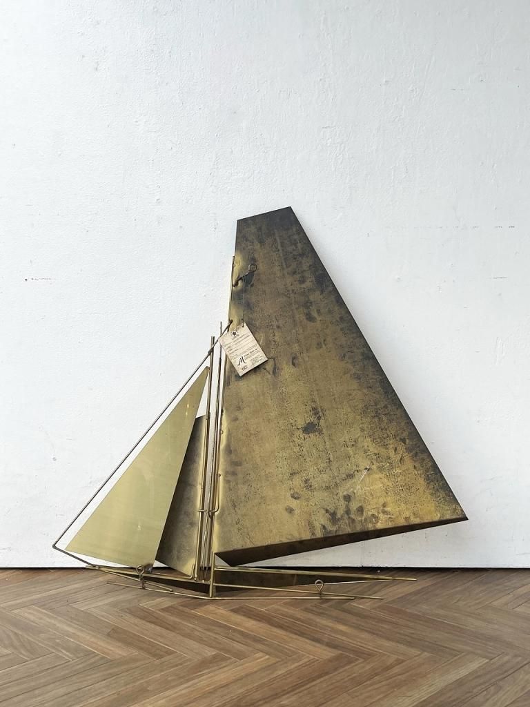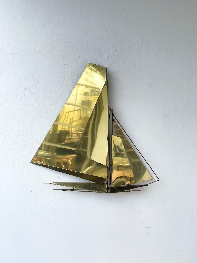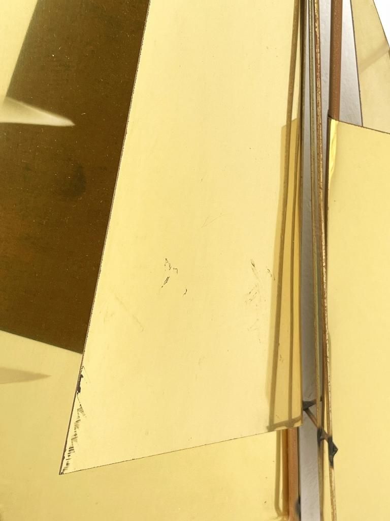 何枚ものゴールドメタルが綺麗に加工され、立体的なヨットのシルエットが浮かび上がりインパクトのあるひと品。