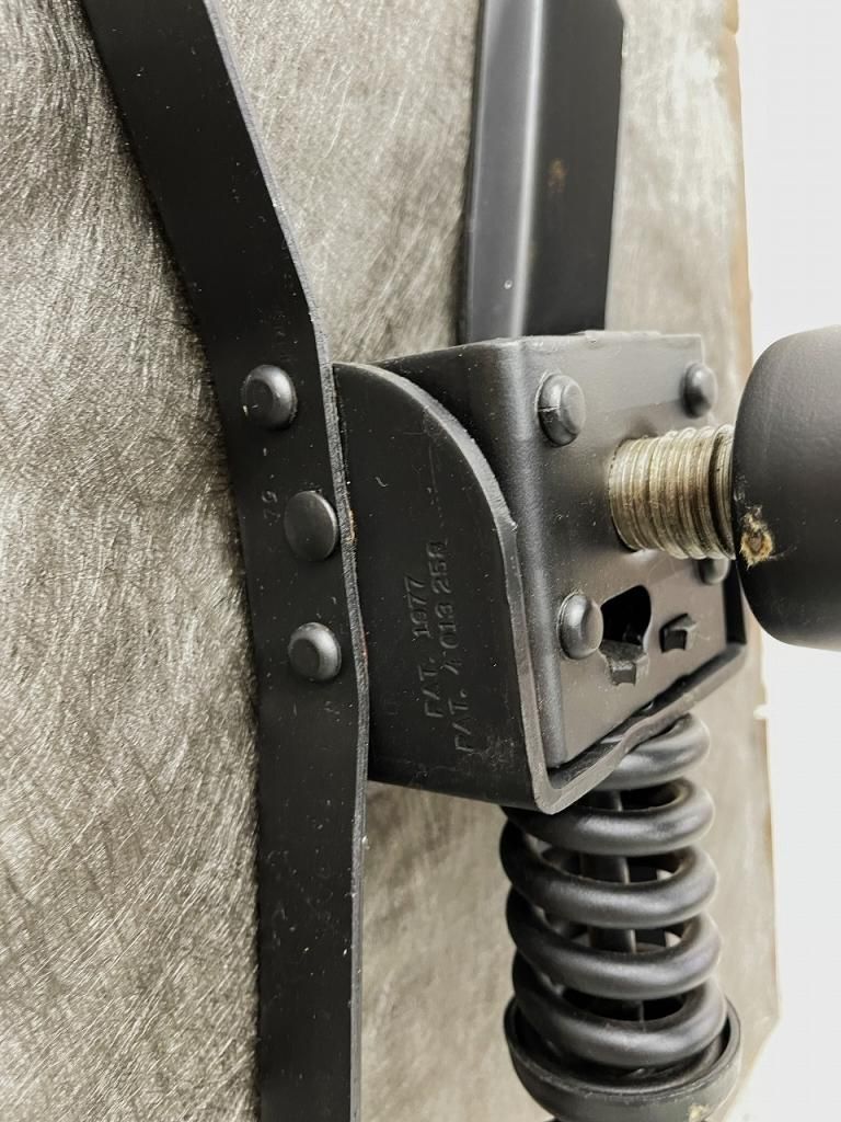 正面の座面下のダイヤルにてリクライニングの硬さ調節が可能です