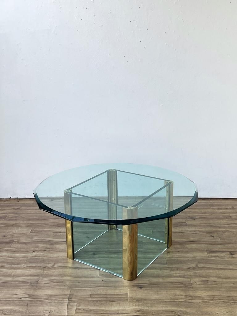 アメリカより買い付けました、ヴィンテージ ガラストップ ローテーブルです。
