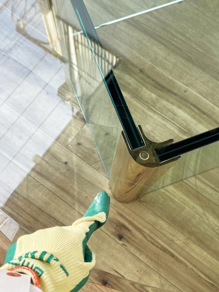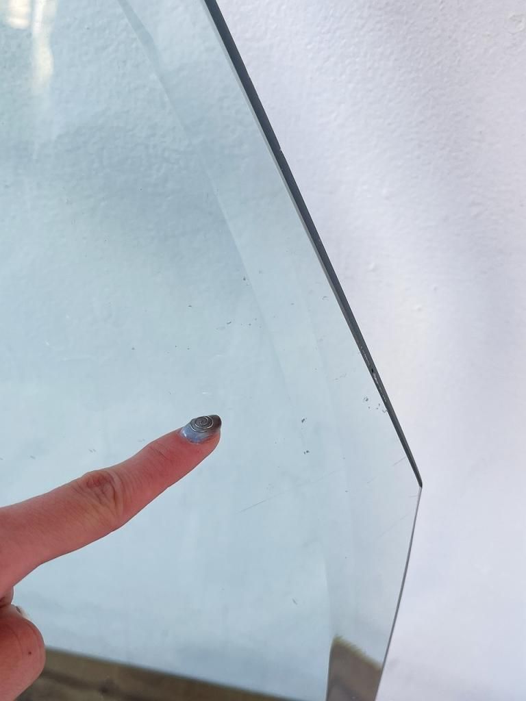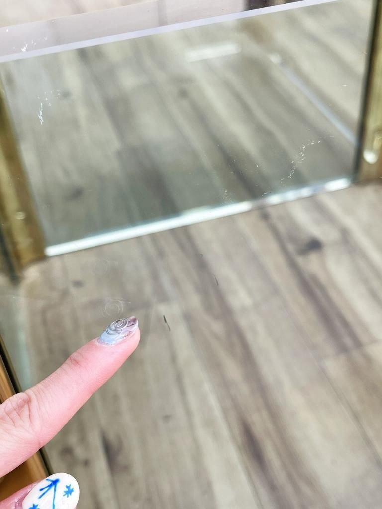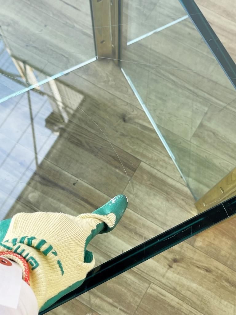 ガラス天板に傷や小さな欠け、汚れがございます。(詳細画像5-15)