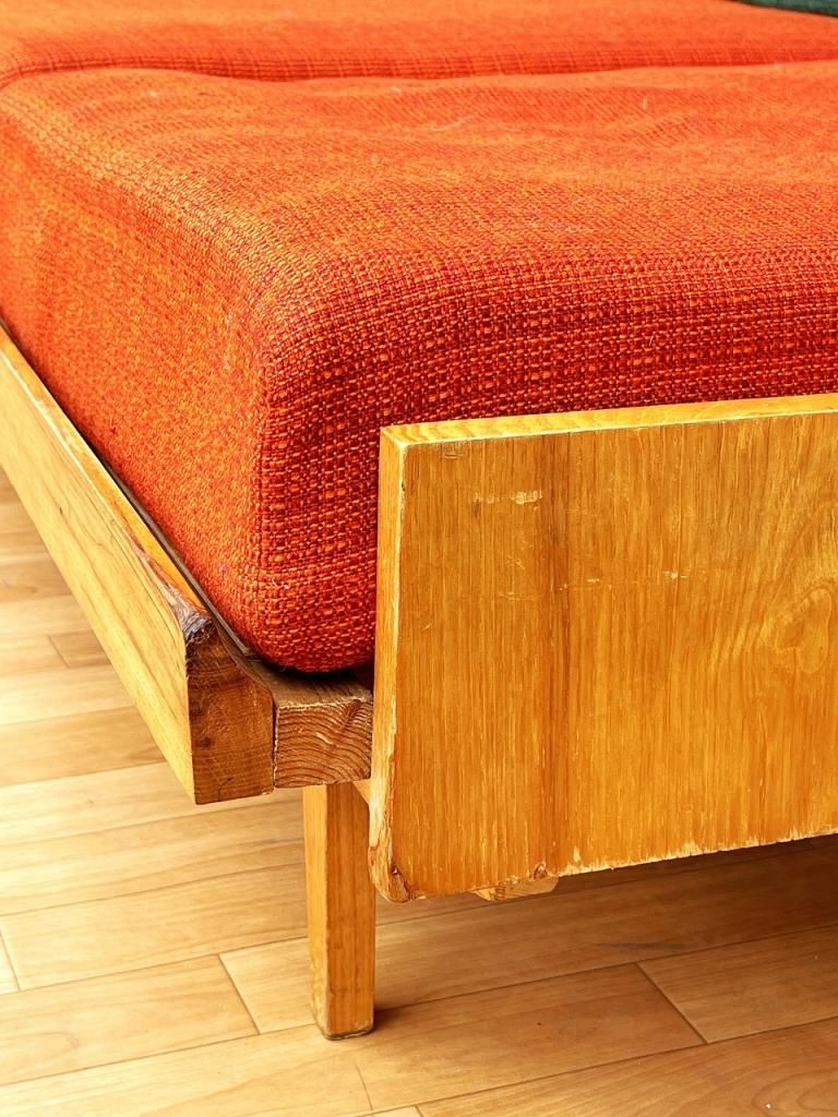 チェコより仕入れました、 1960-70年代頃のファブリック 3シーターソファ/ベッドです。