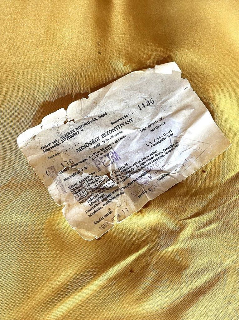 裏面のラベルにはハンガリー語で製品番号や素材についてなどが記載されています。