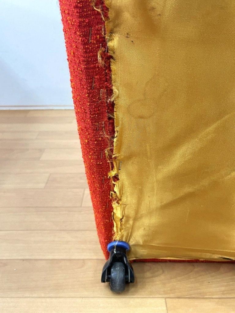 レッドのファブリックに、ぽってりとしたシルエットが魅力の一台。