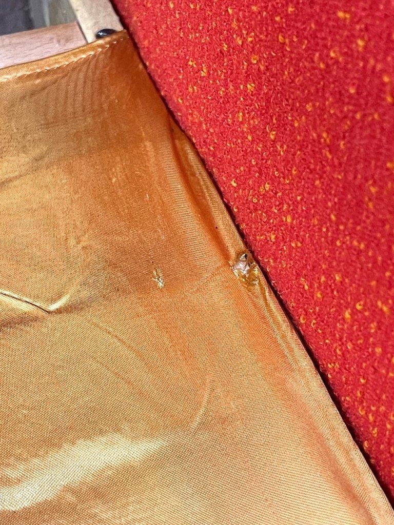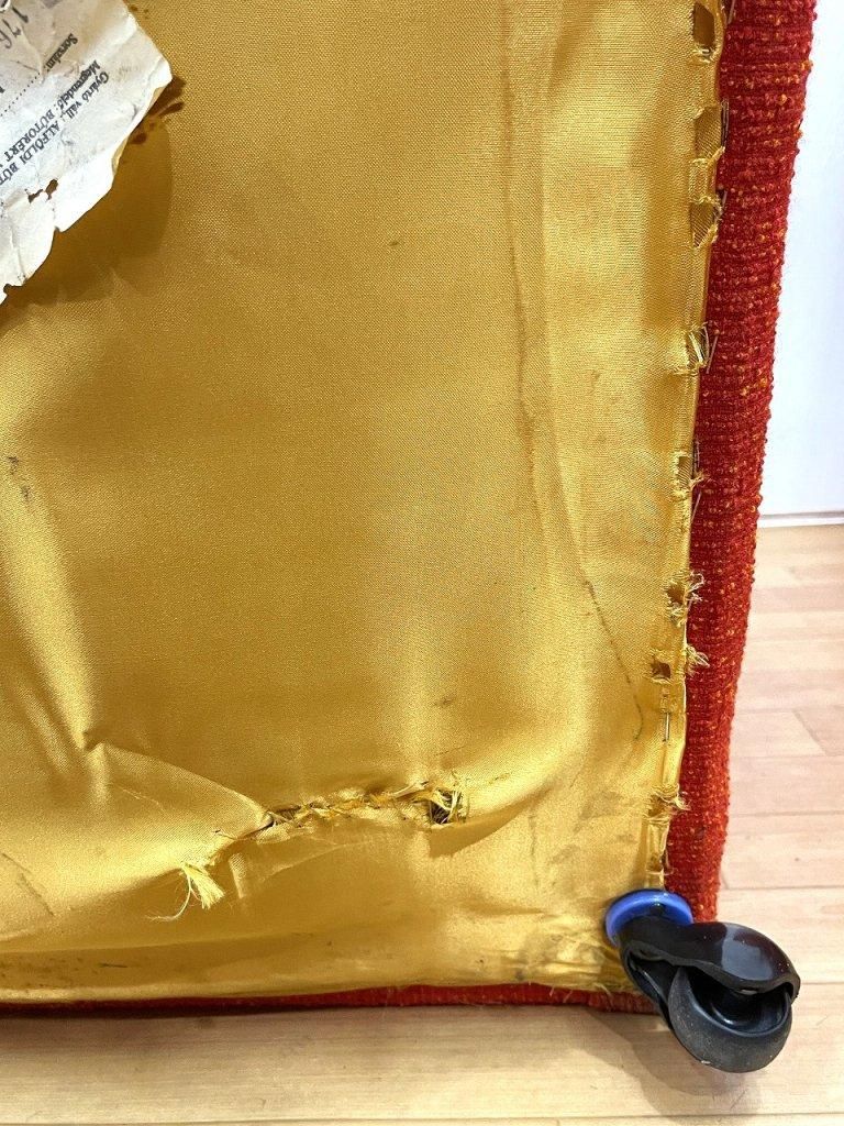 本体座面の生地に破れがございます。