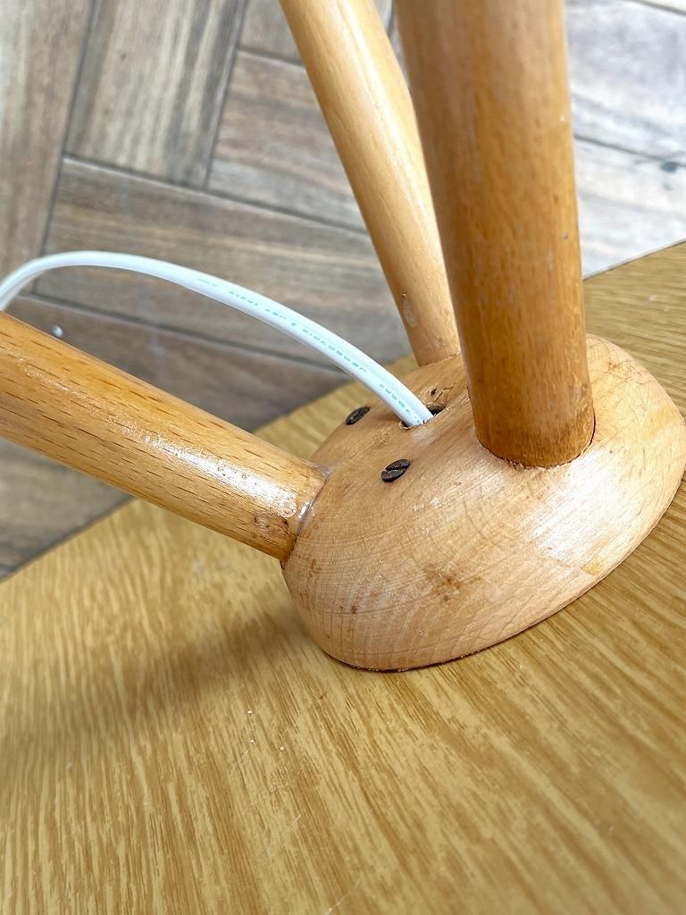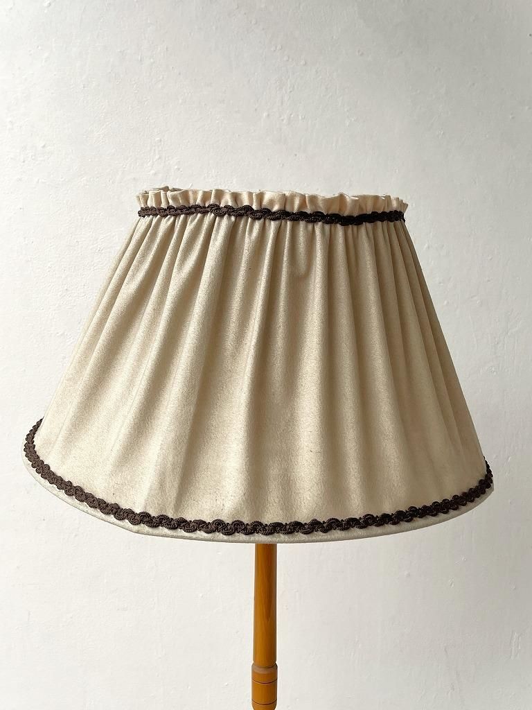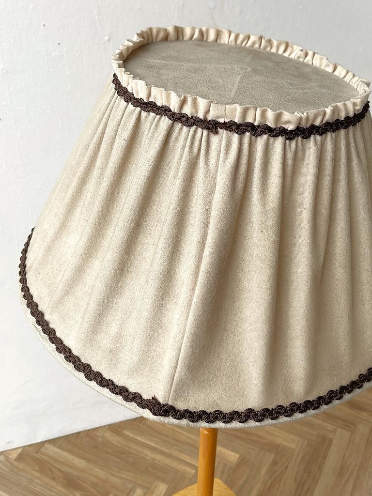 3本足のスマートなシルエットのウッドベースに、ブラウンのラインデザインがアクセントになったプリーツシェードの組み合わせ。