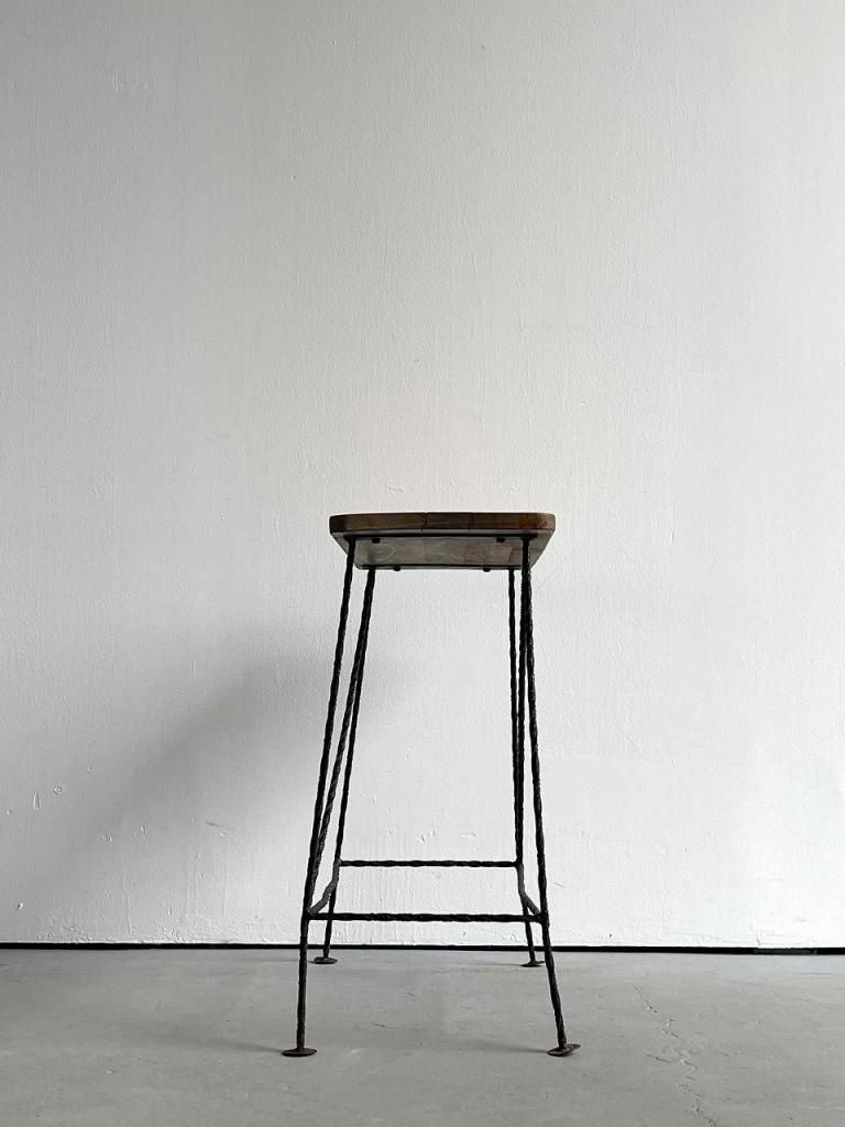 ツイストされたすっきりとしたアイアンベースに、プリミティブなウッド天板を組み合わせた一台。