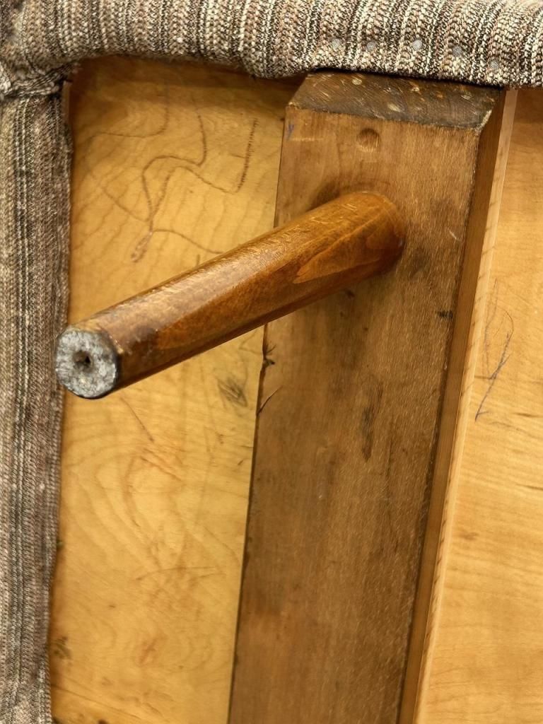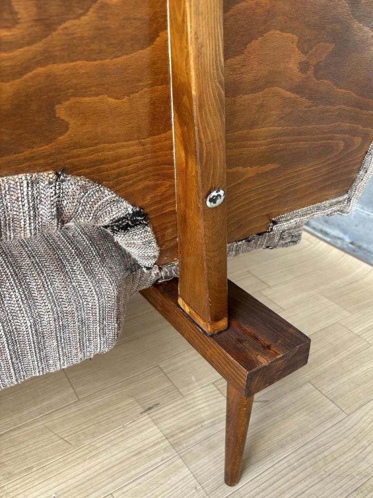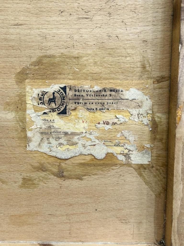 少しはがれておりますが、タグから判別すると、ブルノ市の木工業者という記載があり、地方自治体が運営する家具工房が製造していた事が分かります。