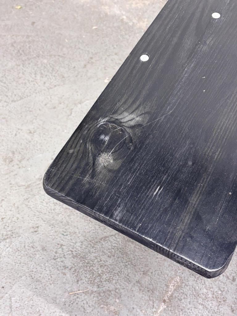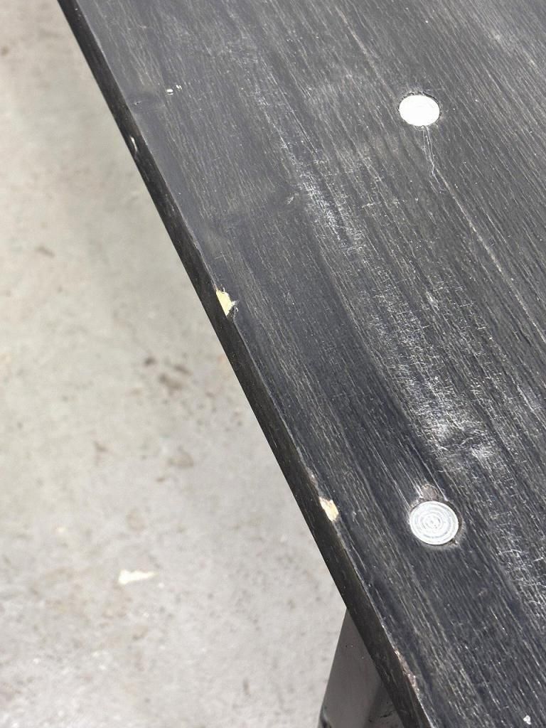 ブラックに塗装されたウッド天板に、スチール製のレッグが渋い風合い。