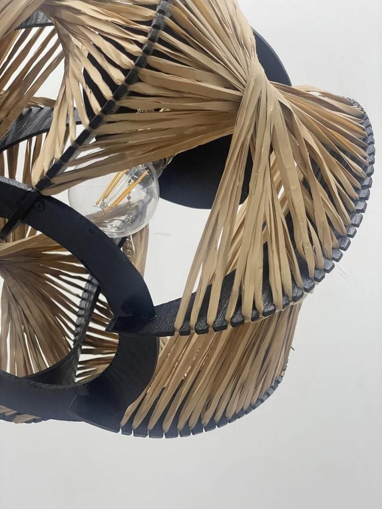 ¥Ö¥é¥Ã¥¯¤ÎÌÚÀ½¥Õ¥ì¡¼¥à¤Ëµ¬Â§Åª¤ËÄ¥¤ê½ä¤é¤µ¤ì¤¿¥³¡¼¥É¤¬Î©ÂÎŪ¤Ê±¢±Æ¤òÀ¸¤ß½Ð¤·¡¢¸÷¸»¤ò½À¤é¤«¤¯Êñ¤ß¹þ¤à¤è¤¦¤Ê¥Ç¥¶¥¤¥ó¤Ç¤¹¡£