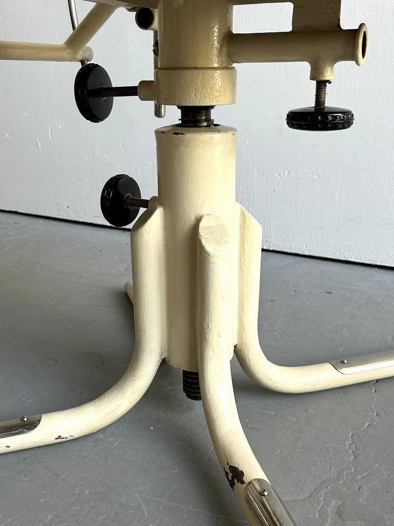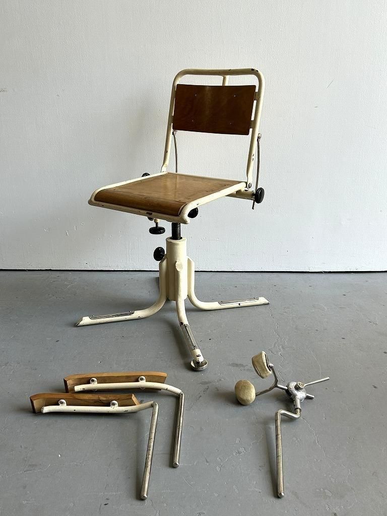 昨今の医療用のチェアなどはウレタンクッションやビニールレザー張りなどが主流ですが、約80-100年も前となるとアイアンフレームにプライウッド座面とかなりインダストリアルなマテリアル。