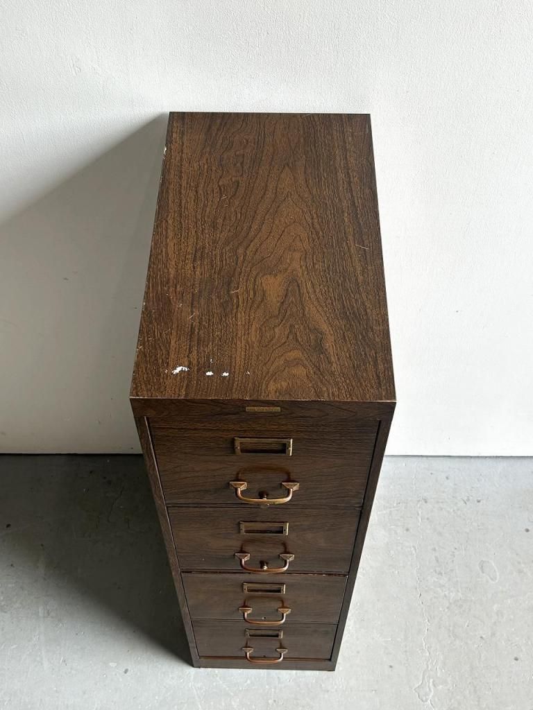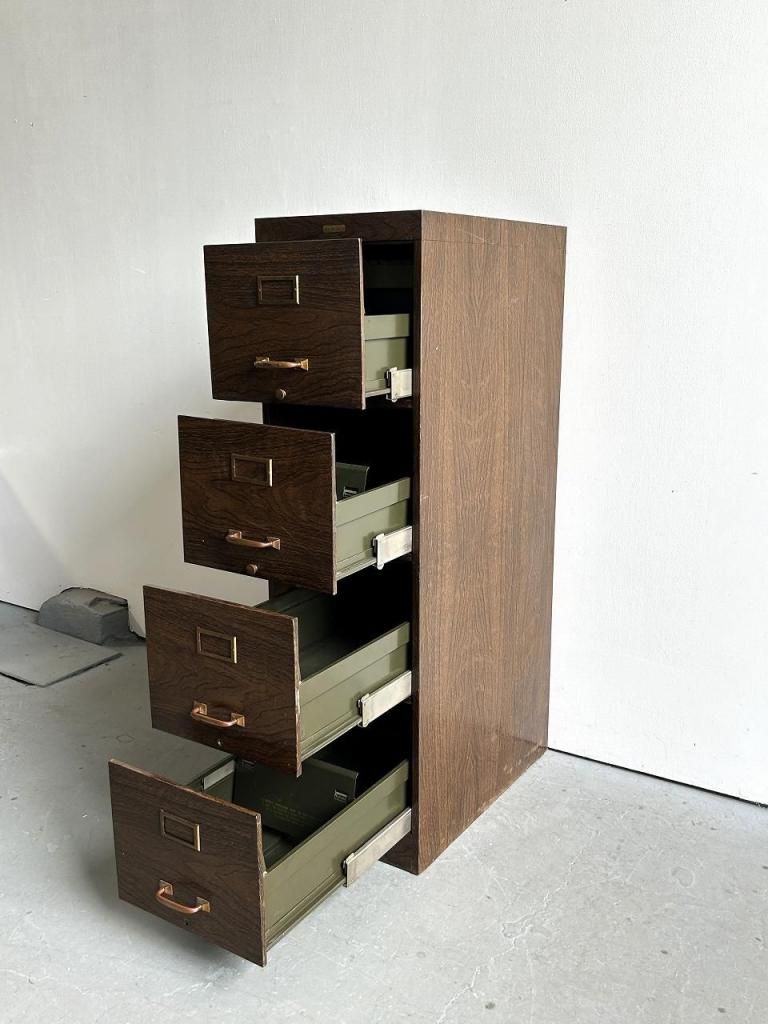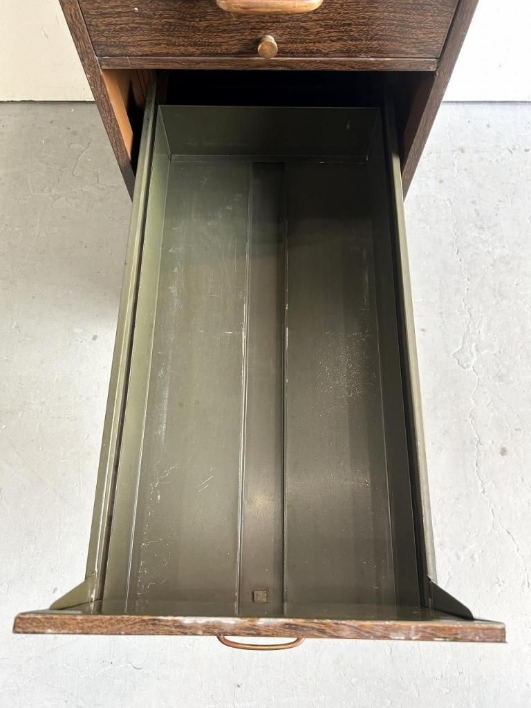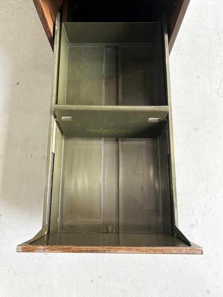 4段の引き出しは収納力も高く、最上段にはImperial 社(イリノイ州フォレストパーク)のファイル用仕切りが残っています。