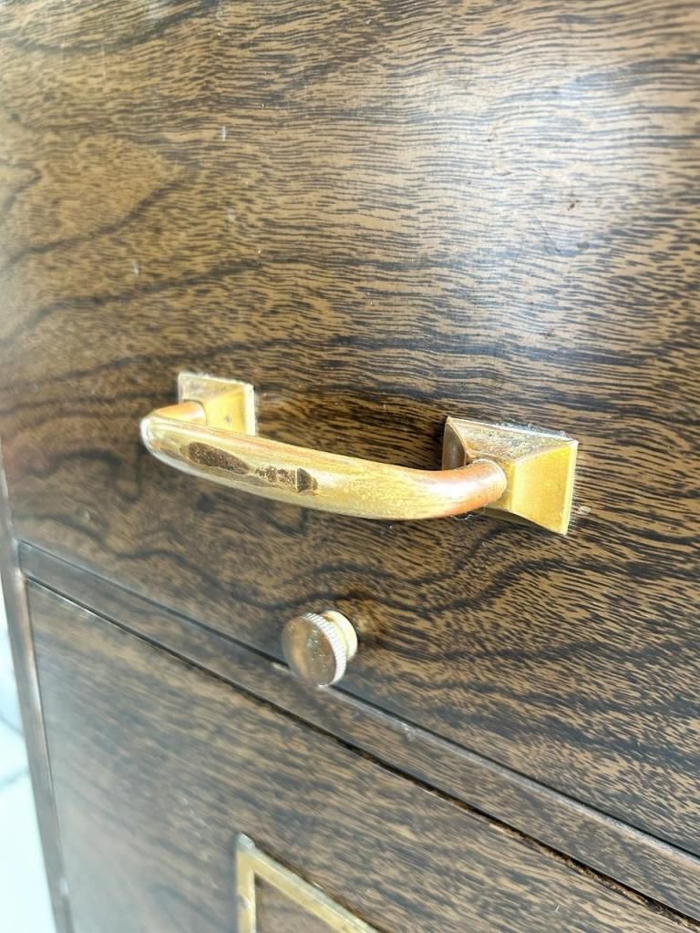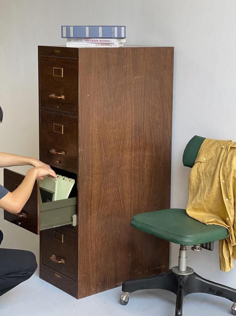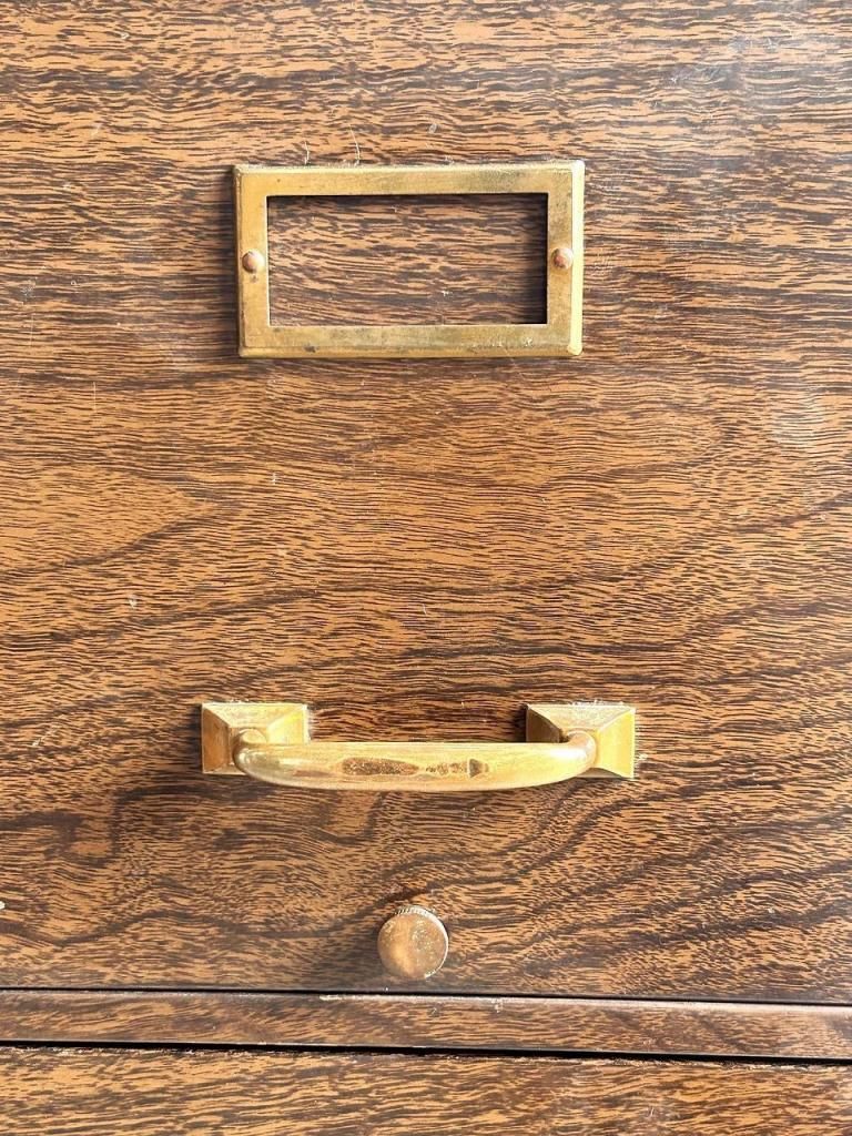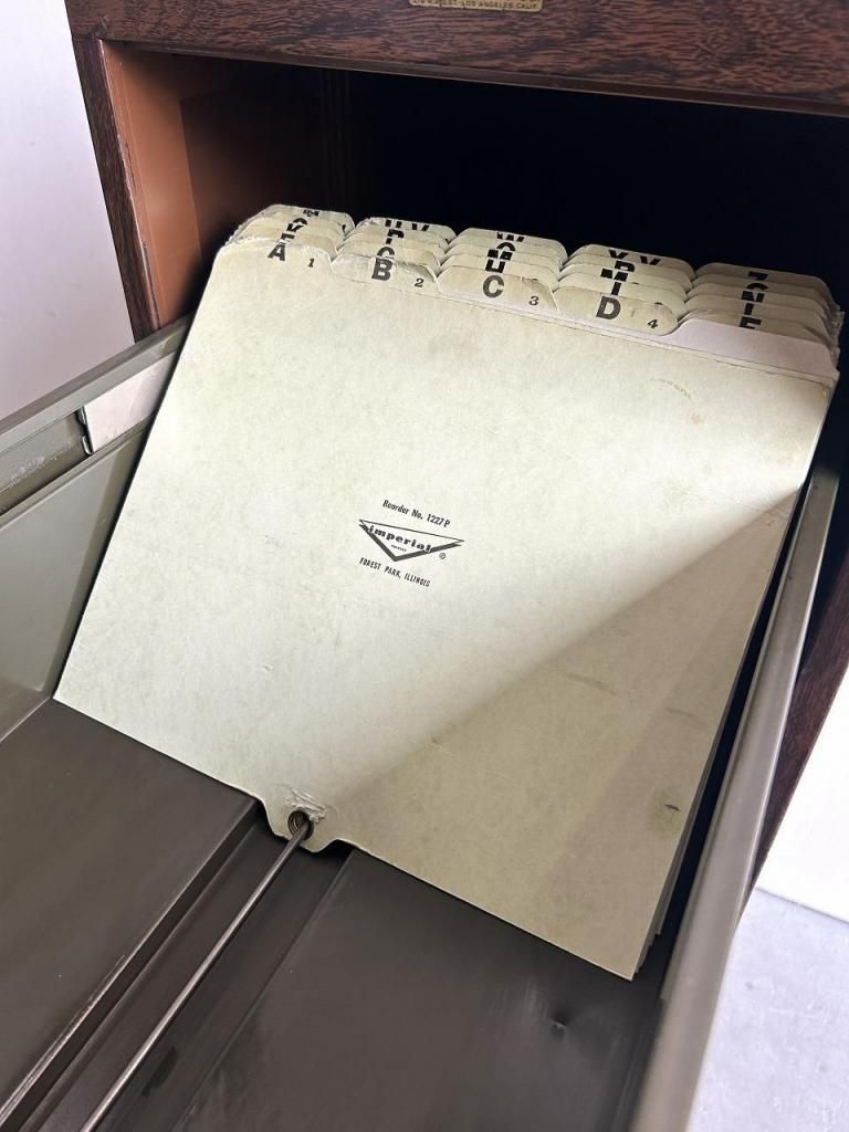4段の引き出しは収納力も高く、最上段にはImperial 社(イリノイ州フォレストパーク)のファイル用仕切りが残っています。