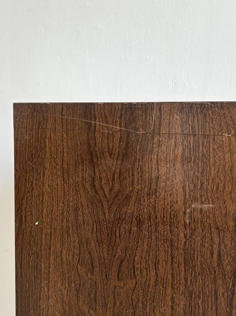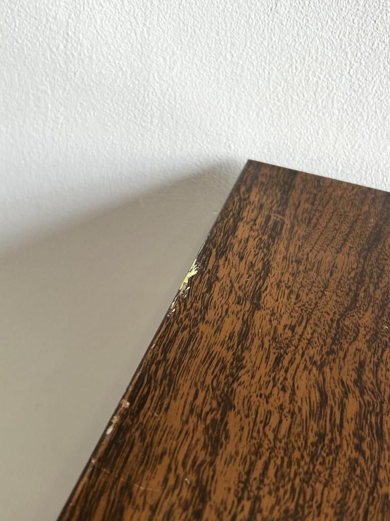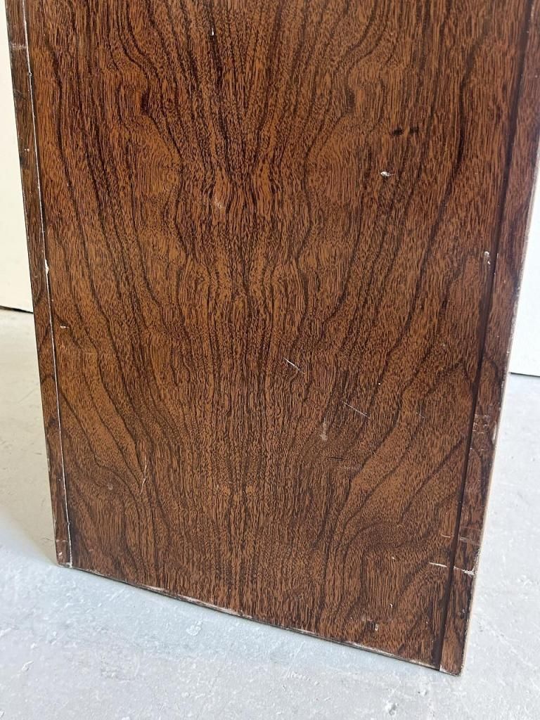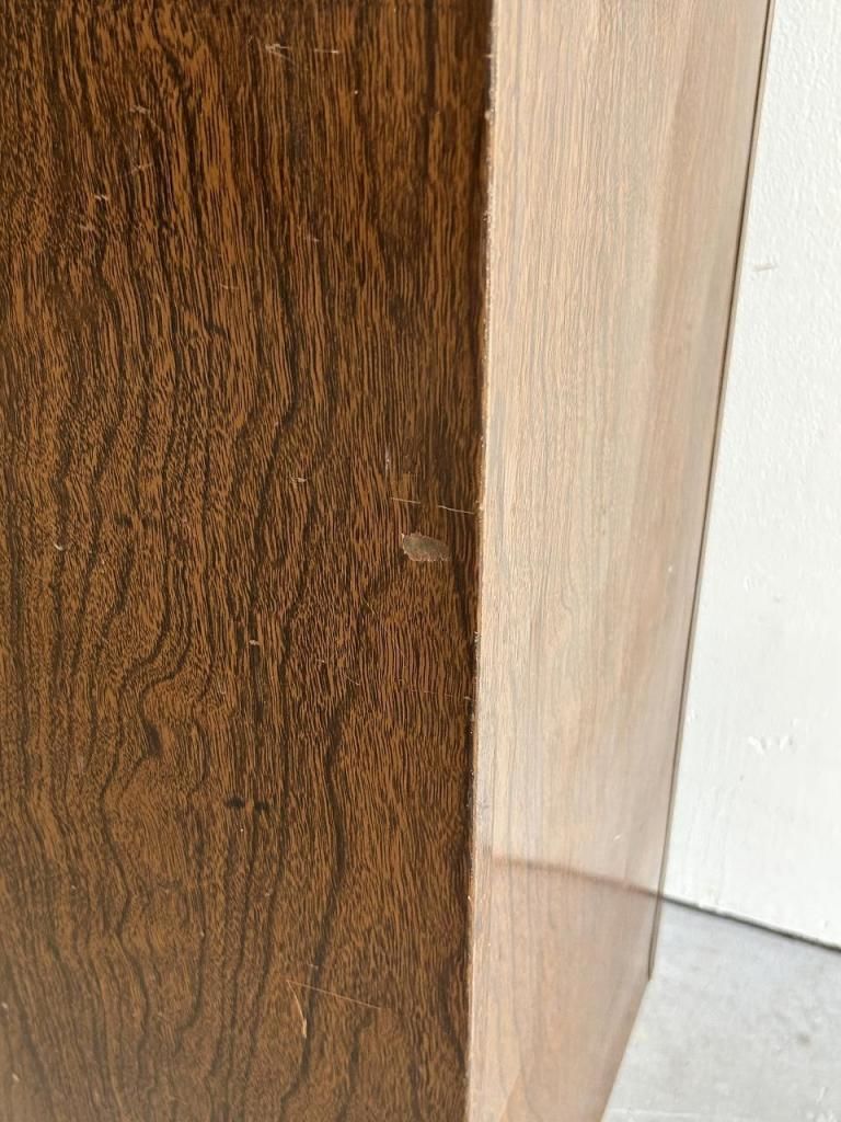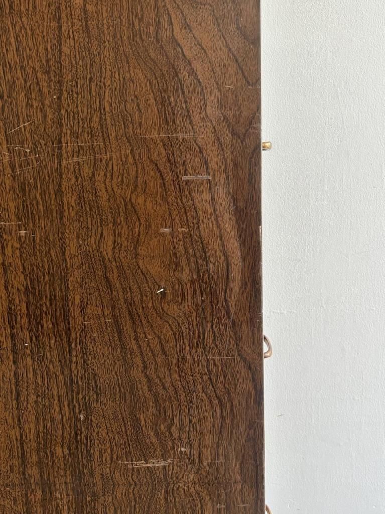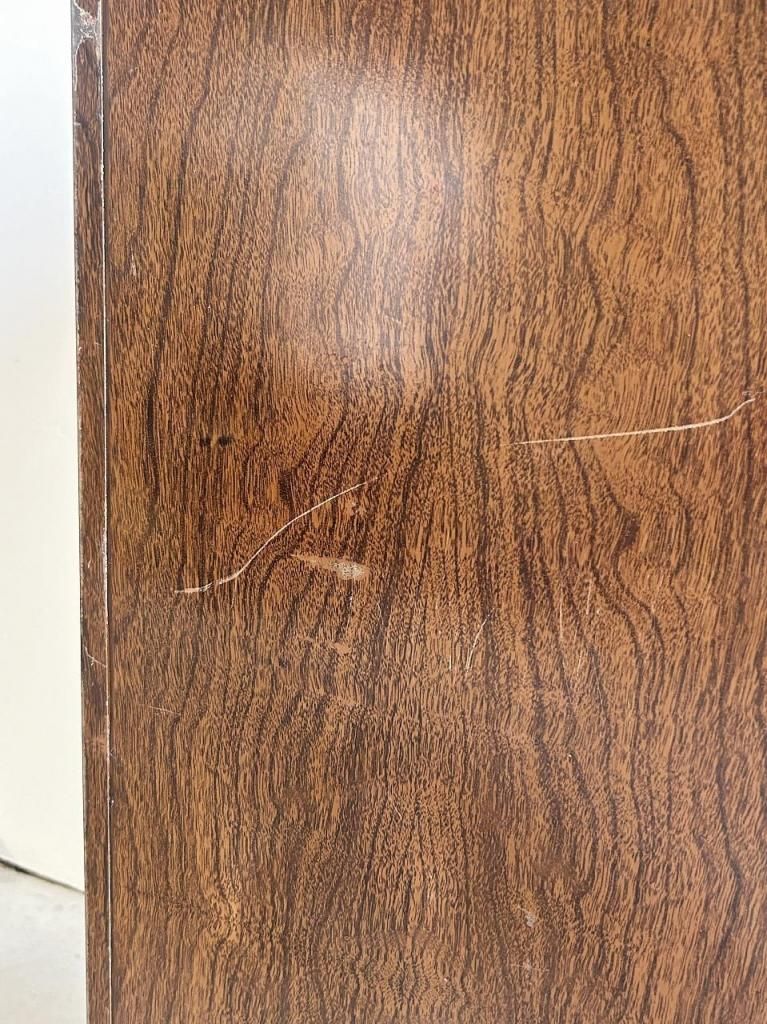 外装は木目調のプリント仕上げ、内部はオリーブグリーンのスチール製ドロワーという、当時のアメリカらしい実用性と意匠性を兼ね備えた一台です。