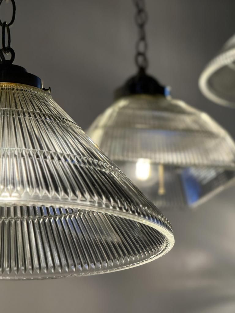 ÆÈ¼«¤ÎÌÀ¤ë¤¤¥×¥ê¥º¥à¥¬¥é¥¹¤Çͭ̾¤ÊHolophane¼Ò¤Î¥Õ¥¡¥¯¥È¥ê¡¼¥é¥¤¥È¤Ë»÷¤¿¹½Â¤¤Ç¡¢²¼¤Ë¹Ô¤¯¤ËÏ¢¤ì¤Æ¹­¤¬¤Ã¤¿¥Ù¥ë¤Î¤è¤¦¤Ê¥·¥ë¥¨¥Ã¥È¤¬ÆÃħŪ¤Ê1Åô¡£