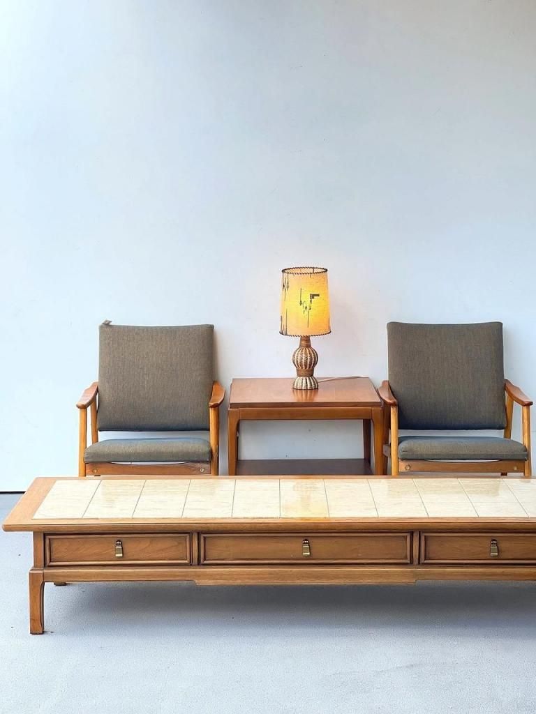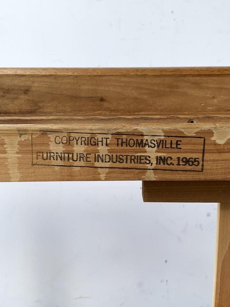 Thomasville Furniture Industriesは、1904年に設立し高品質なアメリカ製家具メーカーとして知られ、クラシカルなスタイルからミッドセンチュリー、モダンデザインまで幅広く展開していました。アメリカ国内では「ハイエンド寄りの量産家具ブランド」として広く認知されており、ヴィンテージ市場で人気があります。