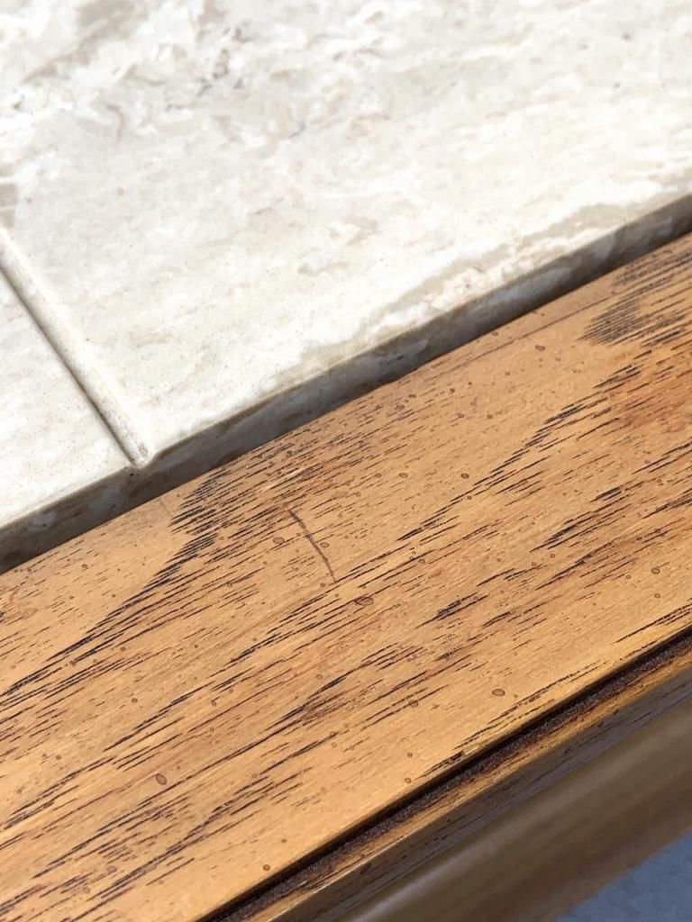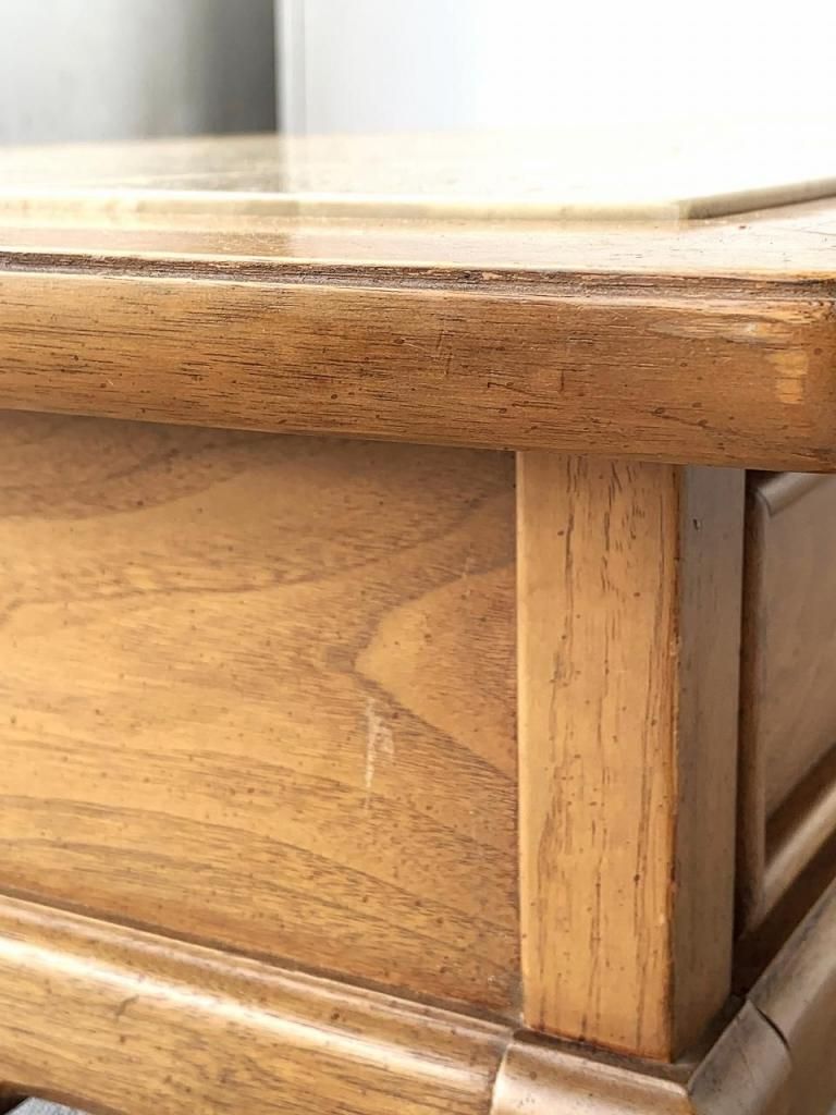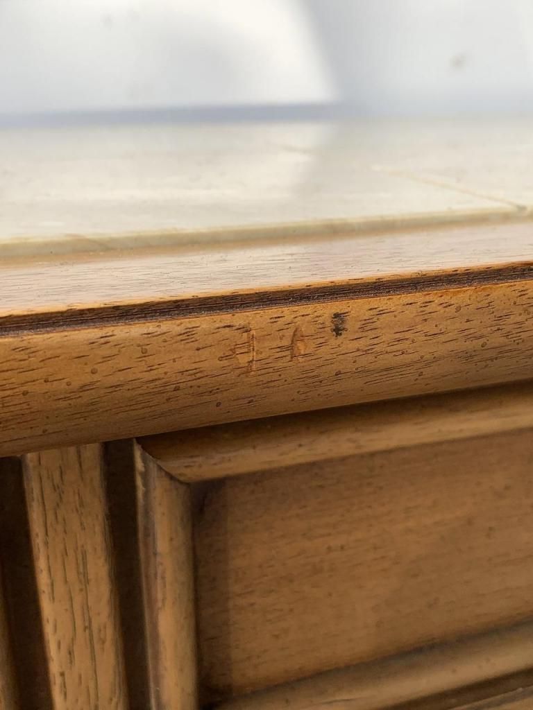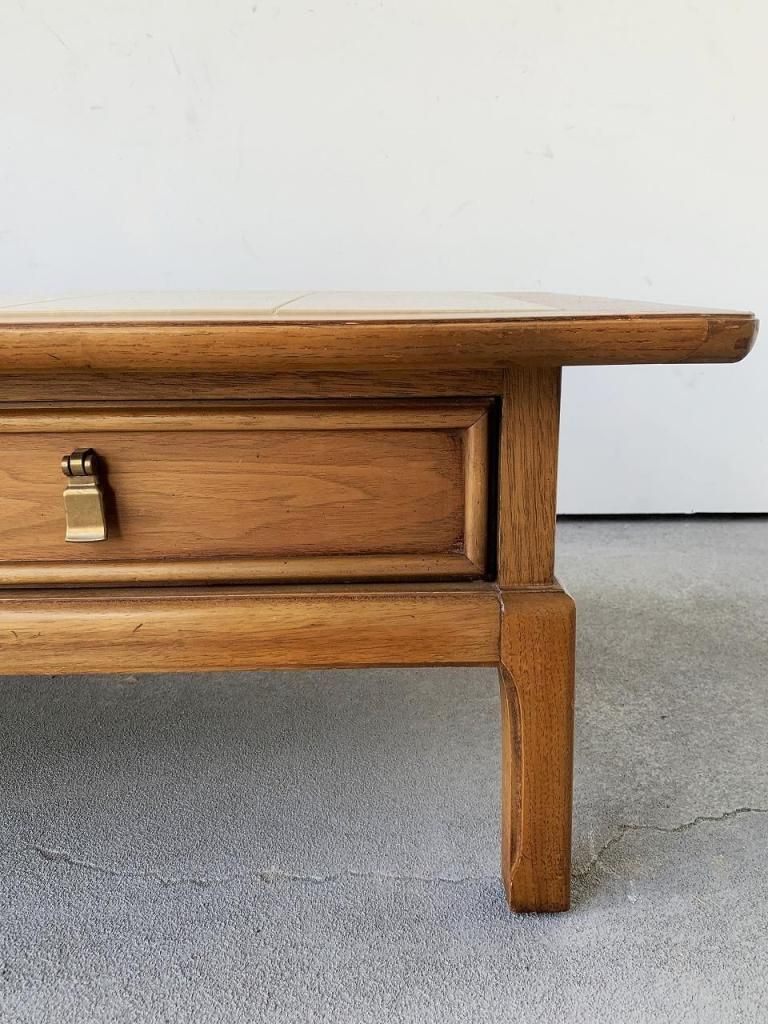 シャープな直線やタイルでモダンな印象ですが、引き出し部分にモールディング加工が施され取っ手には真鍮パーツを使用。モダンをベースにディティールにクラシックな装飾性を加えたThomasville社らしい1台です。