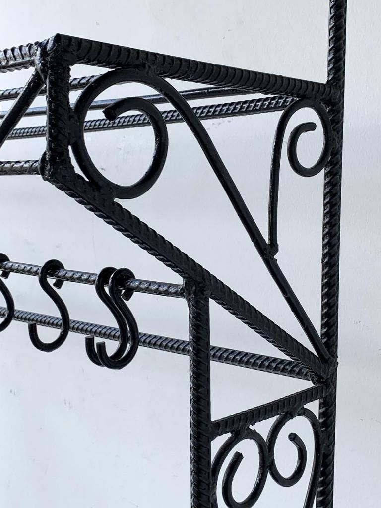 アイアンを用いた無骨な質感と、曲線を織り交ぜた装飾的なアイアンワークが特徴的な一点。