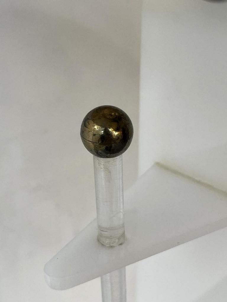 細身のアクリル支柱が直線的に伸び、ゴールドの小さな装飾ボールでアクセントを加え、シンプルさと華やかさの絶妙なバランスです。