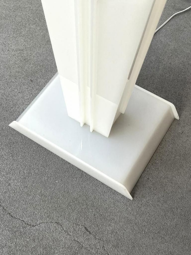 幾何学的に切り込まれたルーサイト(アクリル樹脂)製のベースが特徴的な1台。透明感と軽やかさを持つ素材により、建築的で彫刻的な印象があります。ディティールにはアールデコの装飾性がありながらも、直線的でモダンな要素も感じさせるデザインです。