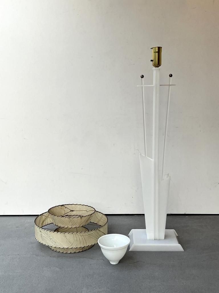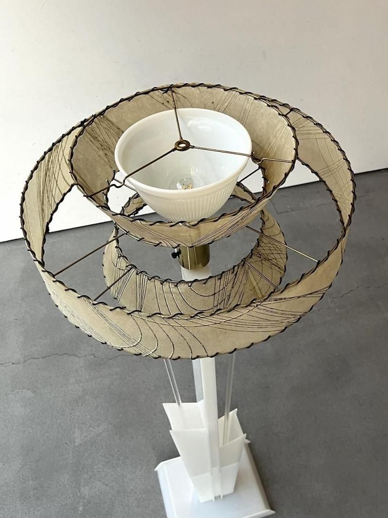 Moss Lamp Co.は、1930-50年代にかけてアメリカで活動した照明メーカーで、大胆なモダンデザインとアクリル素材の活用で知られました。現存数が少なく、ユニークな造形のため、アメリカのヴィンテージ照明市場での希少性が高いです。