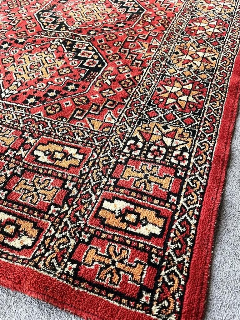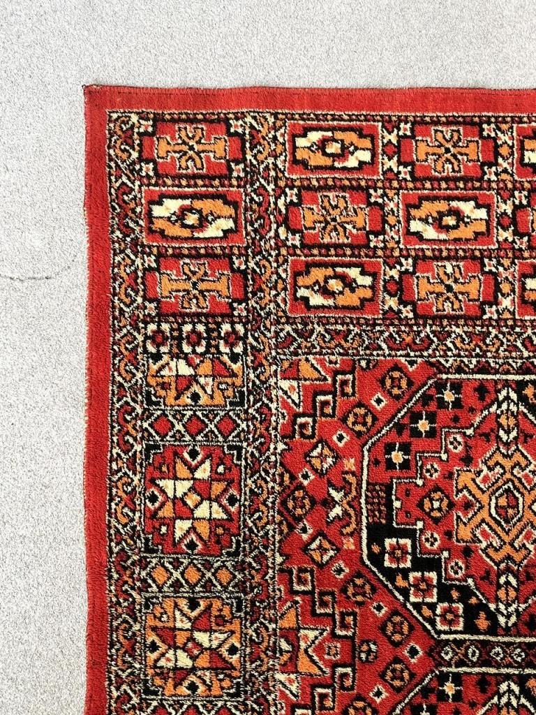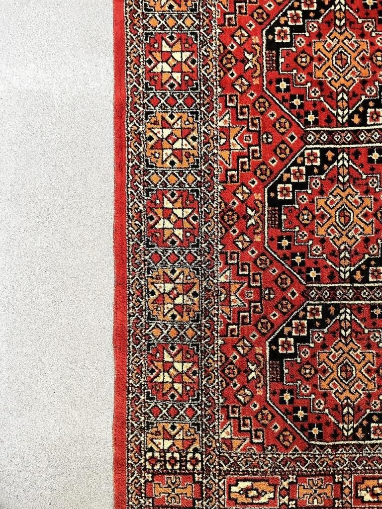 幾何学模様やメダリオンのようなパターンが繰り返し並べられた、鮮やかな一枚。