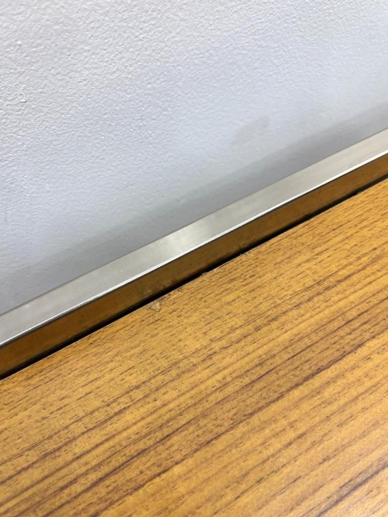 上下明るいトーンと暗いトーンの色味が違う木目調の天板を使用することで、見た目の単調さを避け、デザイン性が高まっています。