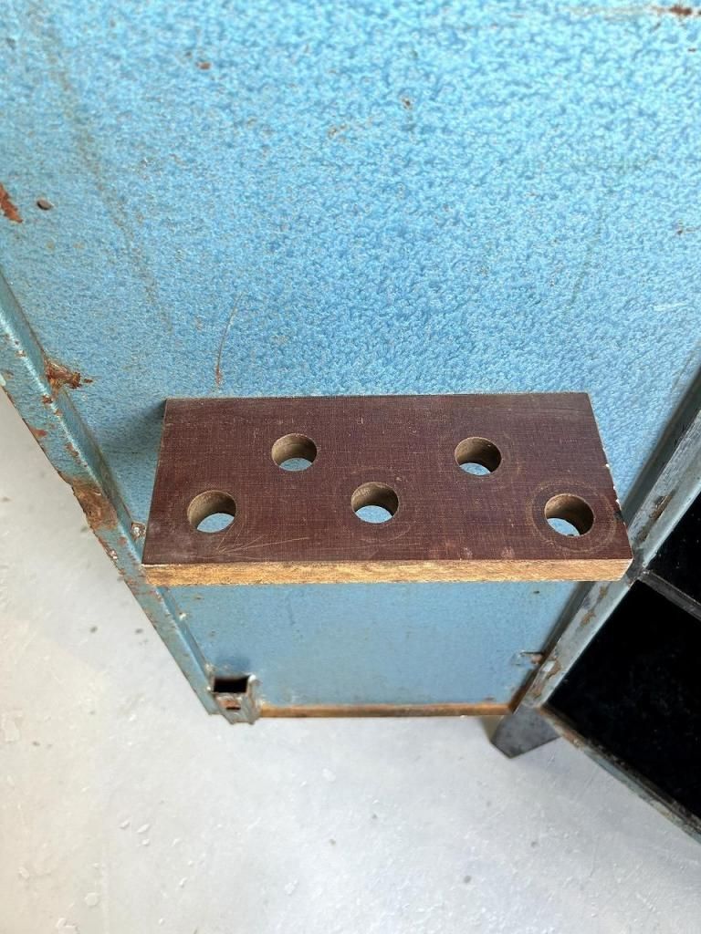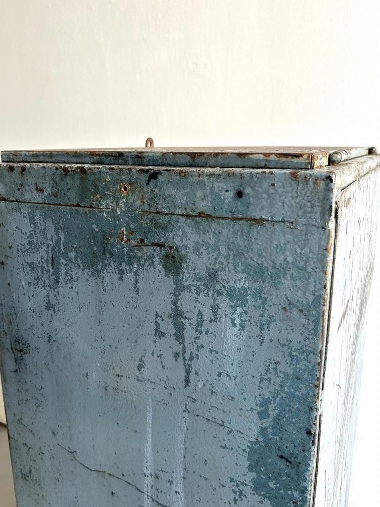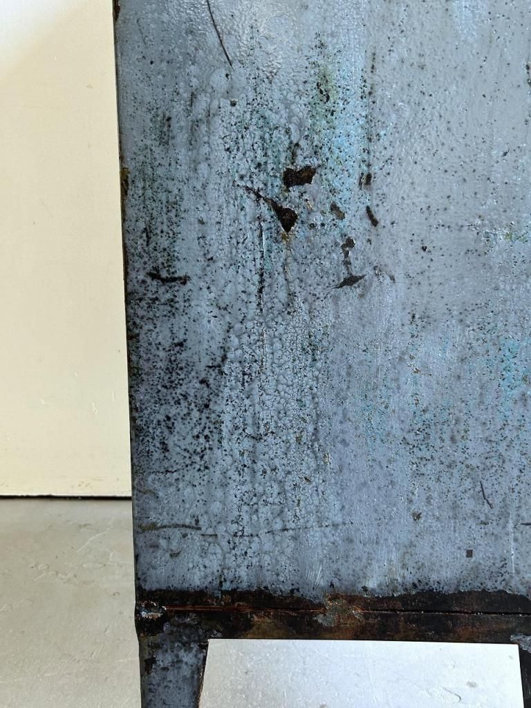 スチール製のボディに経年によるブルーの塗装が薄れてきた風合いが魅力的で、どっしりと重圧感のあるコンパクトなシルエットの一台。