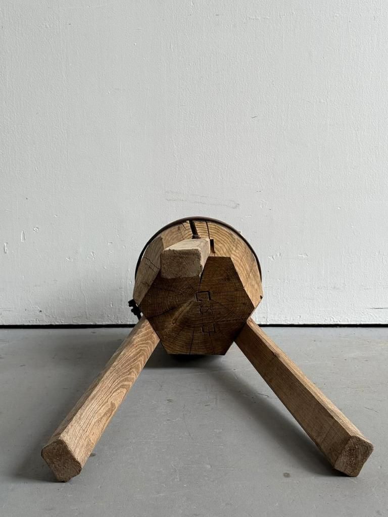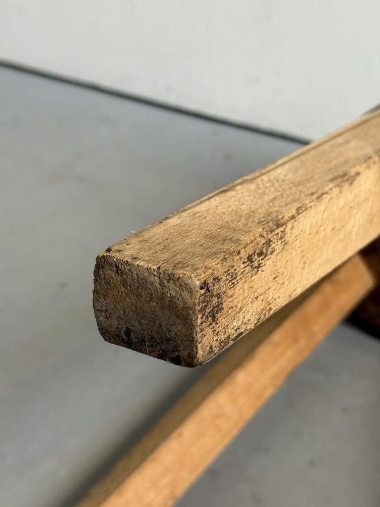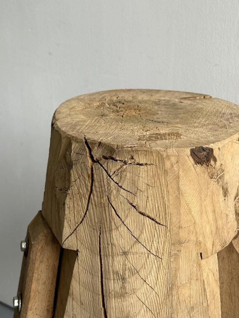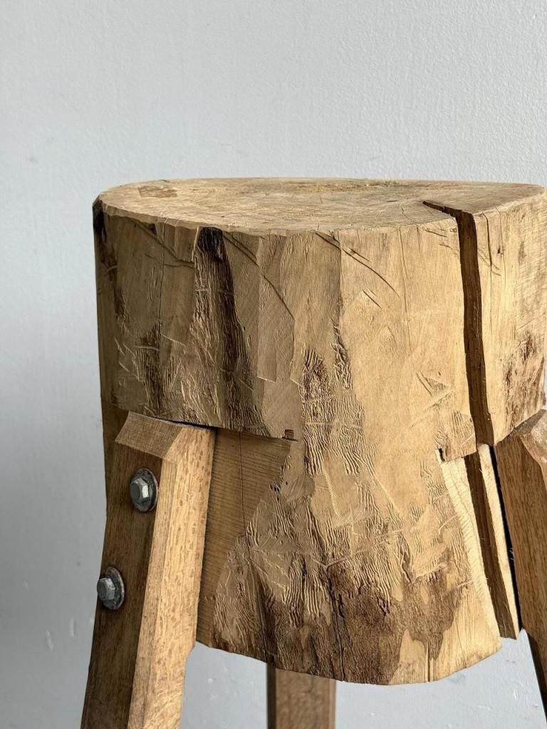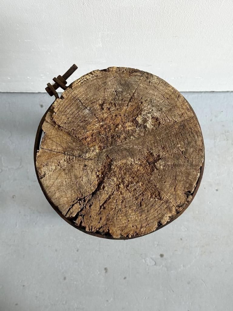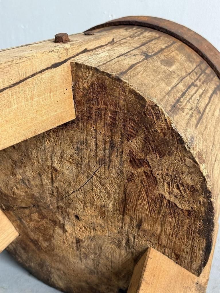 天板部分は太い丸太をそのまま切り出しており、木の割れや荒れた表情がそのまま残された、無骨でワイルドな1台。