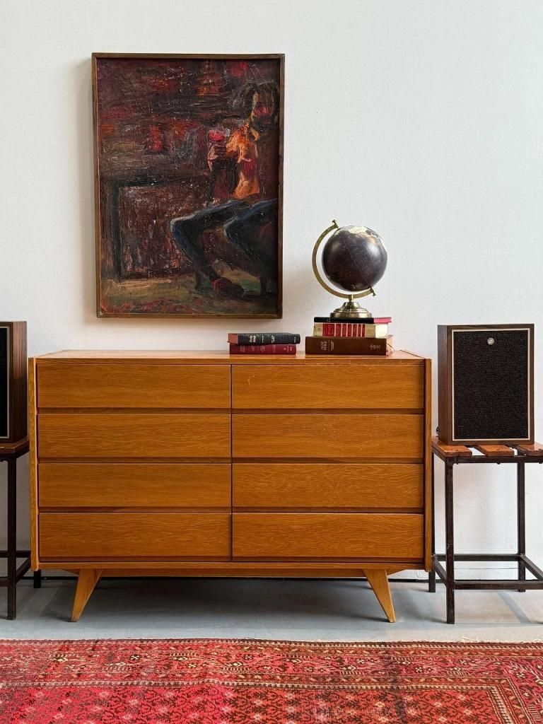 チェコスロバキア時代の国営企業 Interiér Praha(インテリア・プラハ)社 で活躍したデザイナー Jiří Jiroutek(イジー・イルーテック) による “U-453”。1958年ブリュッセル万博で評価された U-450シリーズ の一つで、直線的でシンプルな構造と高い機能性が特徴です。