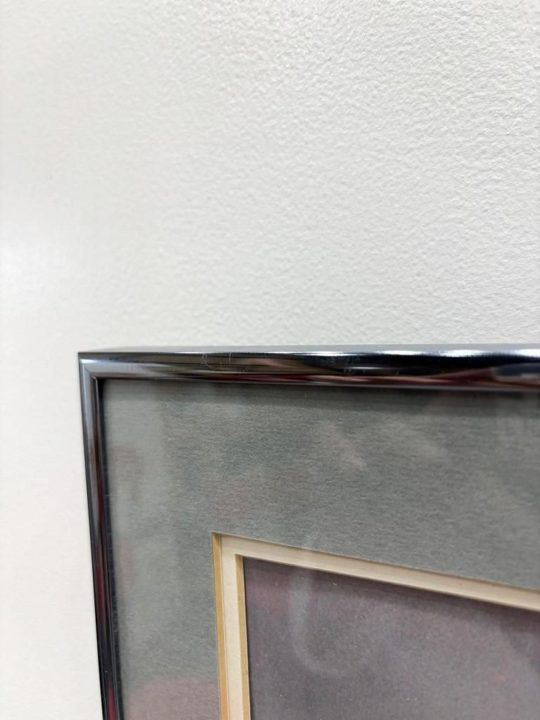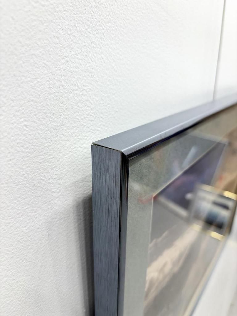 額装はシャープな印象のブルーメタルフレームにグレーマットを合わせた仕様です。都会的な洗練さとヴィンテージらしい味わいを兼ね備え、モダンからクラシックまで幅広いインテリアに馴染みます。
