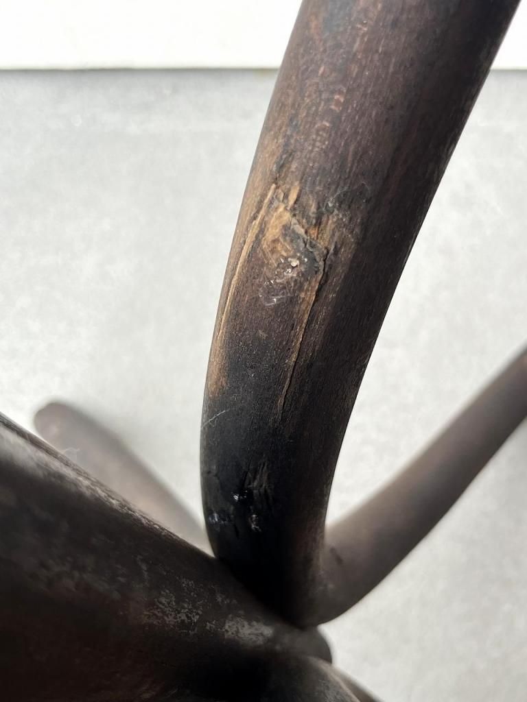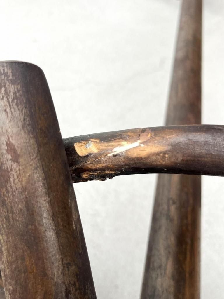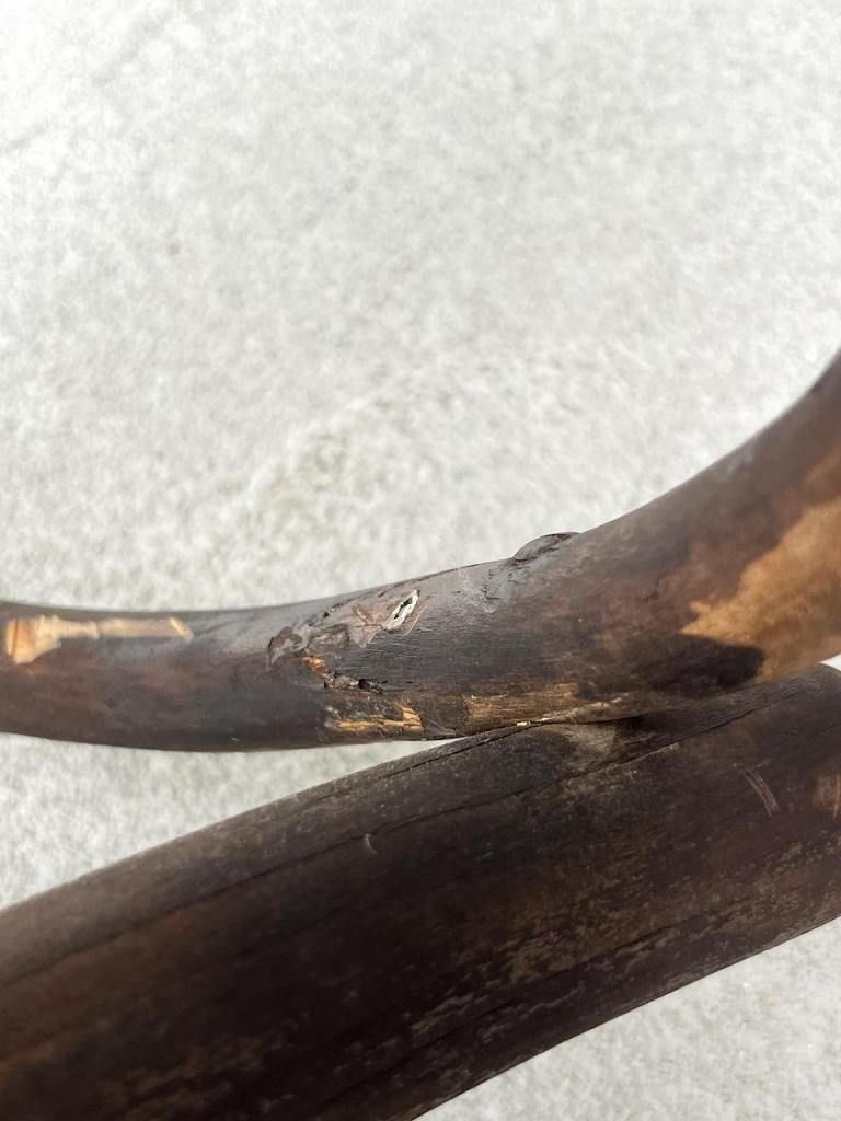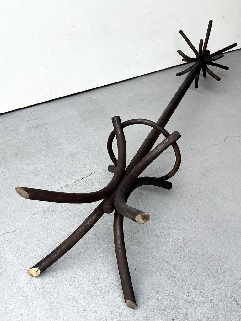 曲木技術を使った、脚部やフック、弧を描いた補強などがすべて滑らかな曲線で作られていて、木の自然な動きを活かした構造です。
