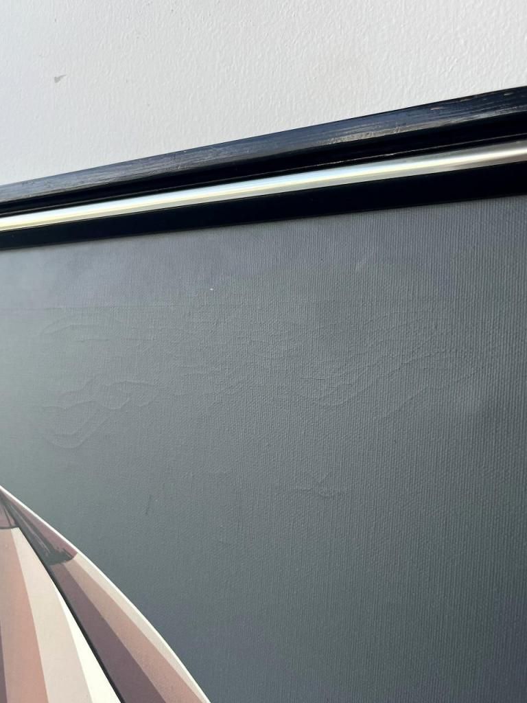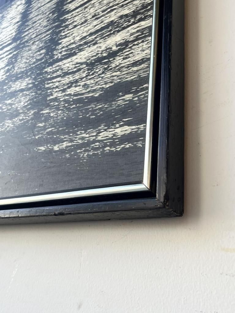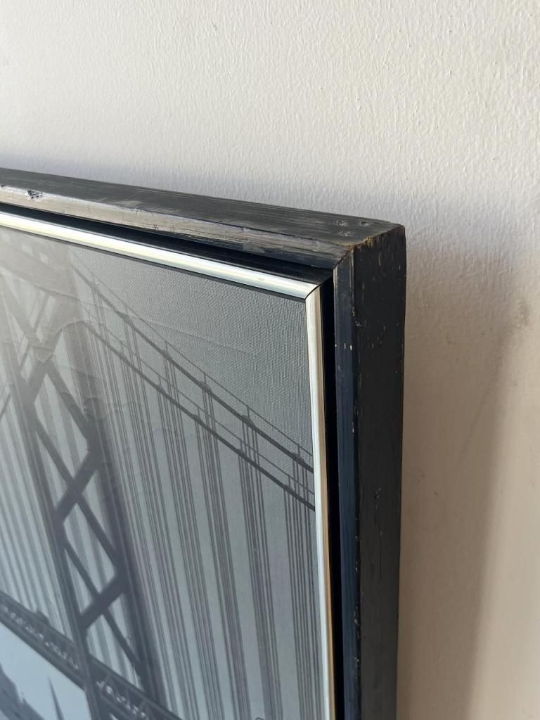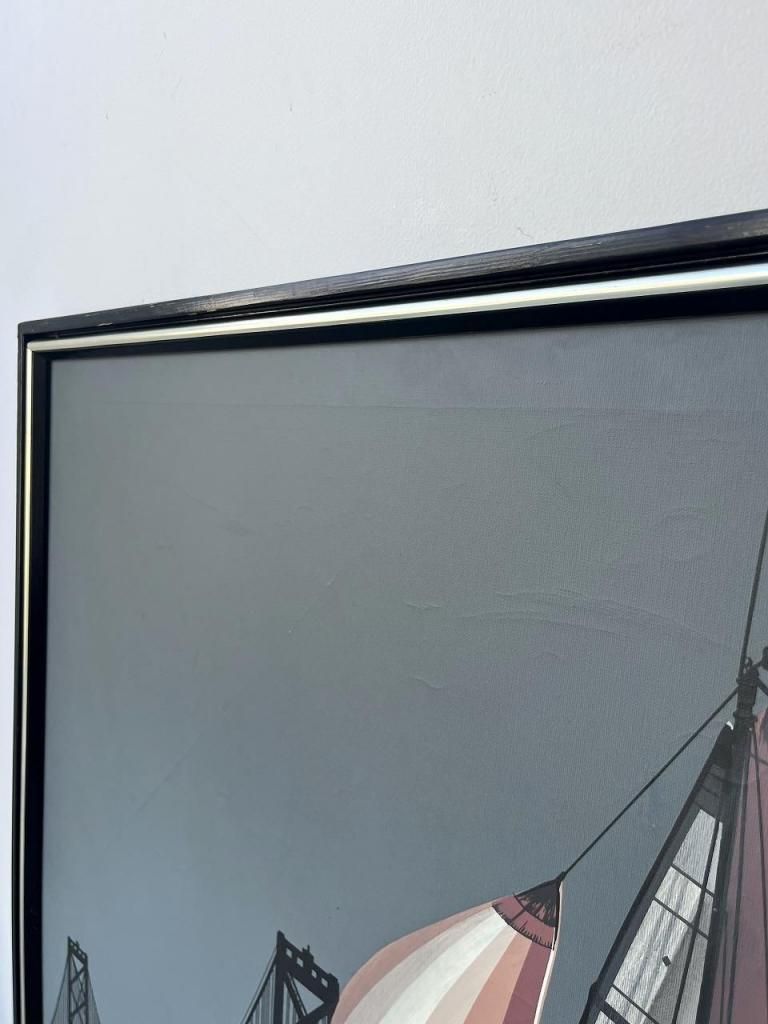 住宅やホテルのロビー、レストランなどの壁面装飾用に制作されていたため、157x127cmという大判サイズで、空間のメインアートとして圧倒的な存在感を放つ事は間違いなく、月明かりとブリッジのシルエットが織りなすコントラストはシックで、モダンインテリアやミッドセンチュリー家具との相性も抜群です。