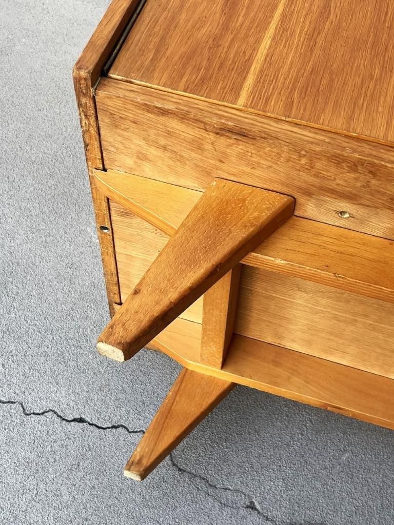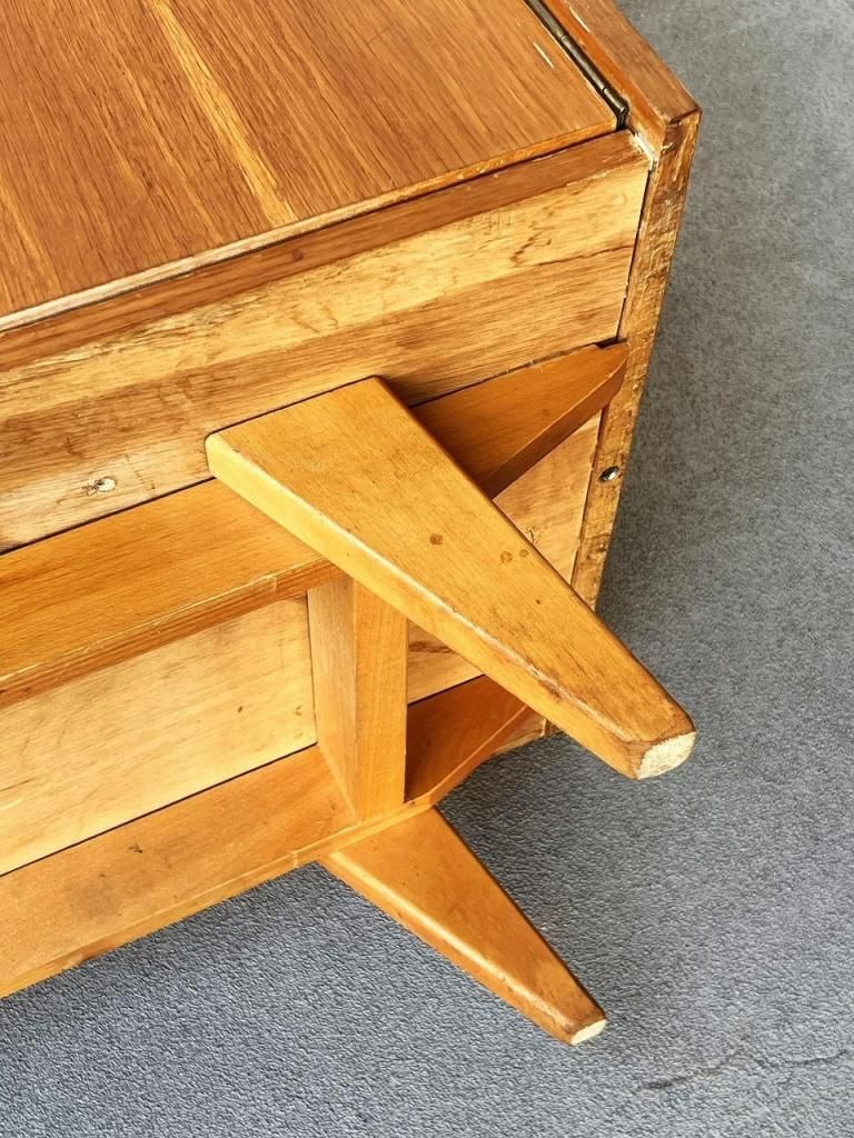 チェコスロバキア時代の国営企業 Interiér Praha(インテリア・プラハ)社 で活躍したデザイナー Jiří Jiroutek(イジー・イルーテック) による “U-450”。1958年ブリュッセル万博で評価された U-450シリーズ の一つで、直線的でシンプルな構造と高い機能性が特徴です。