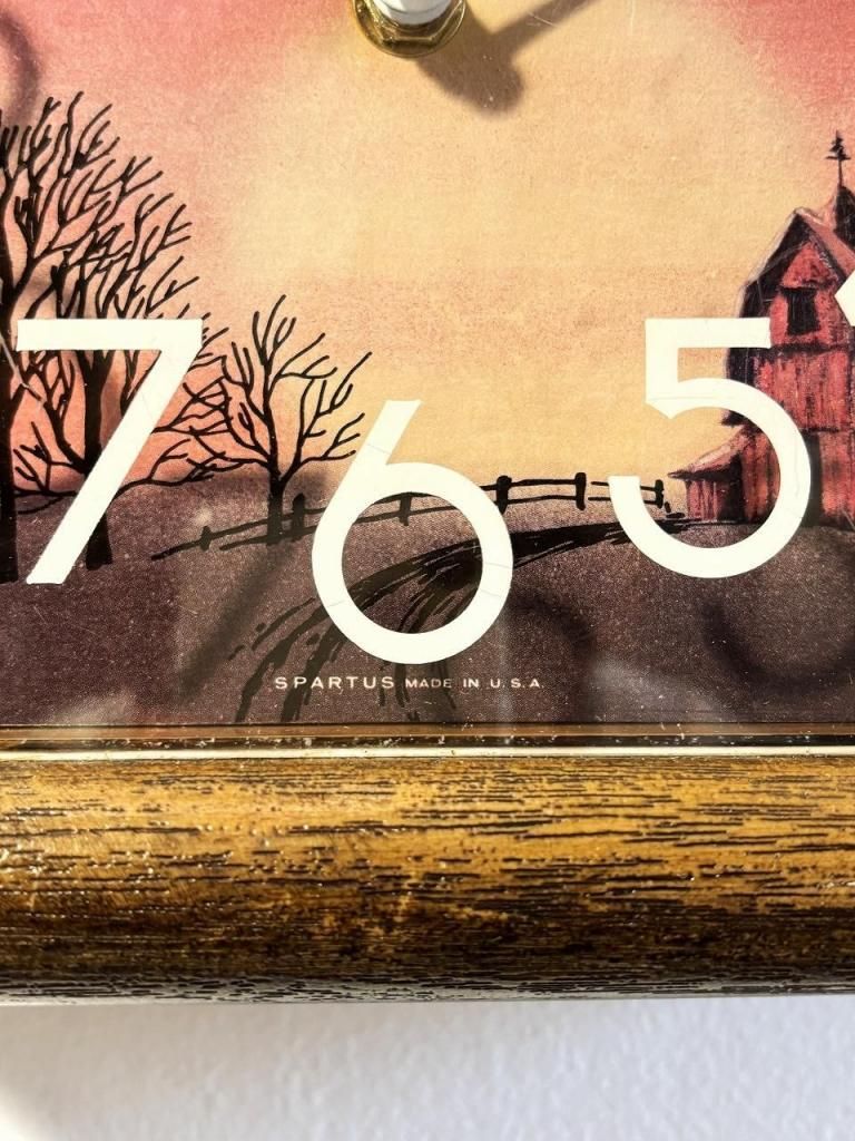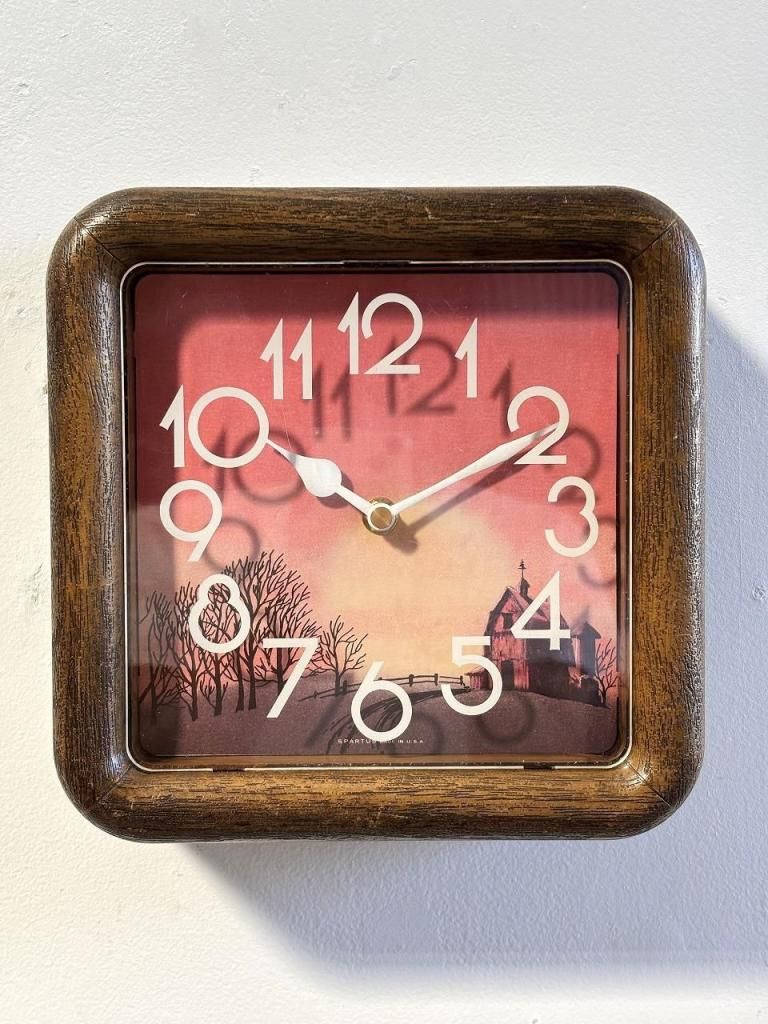 SPARTUS社とは、主に家庭用・カジュアル向けの壁掛け時計・電気時計・クォーツ時計を製造していました。1960-80年代には、風景・イラスト入りの時計を多く展開しています。