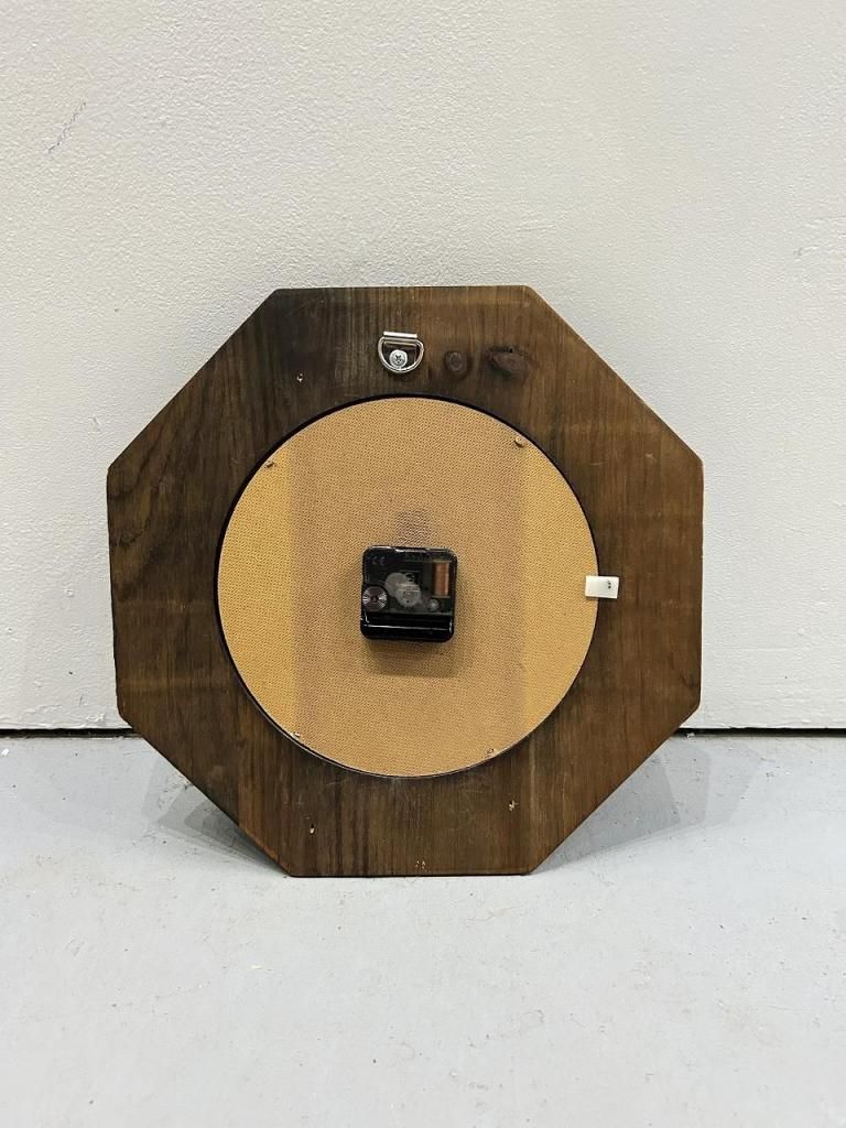 アメリカンウォールクロックの定番スタイルのオクタゴンフレームで、深いウッドに若干の光沢を持った上品な佇まい。ローマ数字を採用することにより、クシックな雰囲気を演出しています。