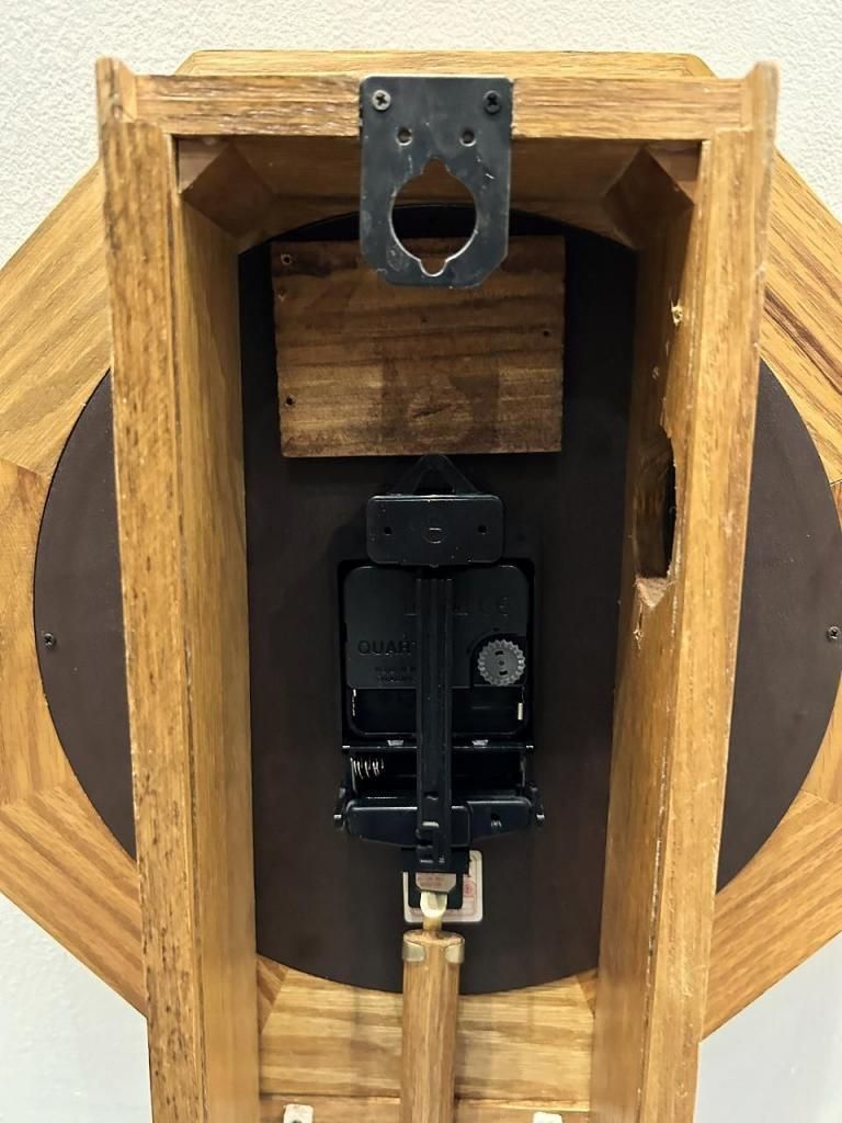 明るいオーク材風のウッドフレームで、家庭的で温かい“リビングの時計”として空間に馴染みます。