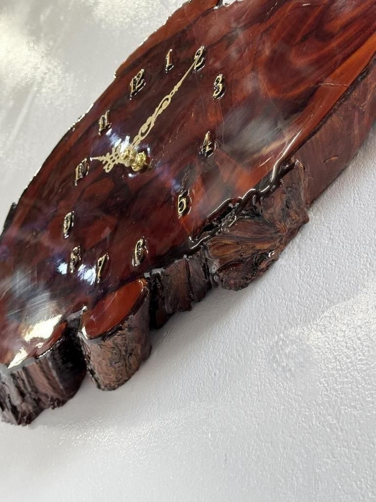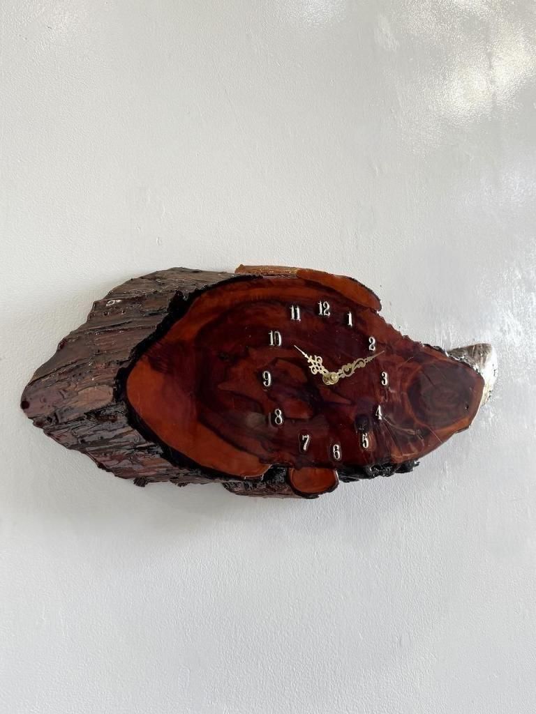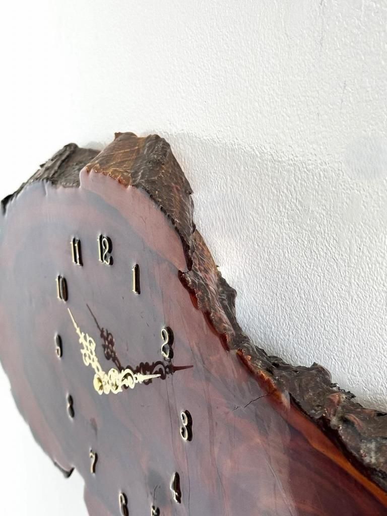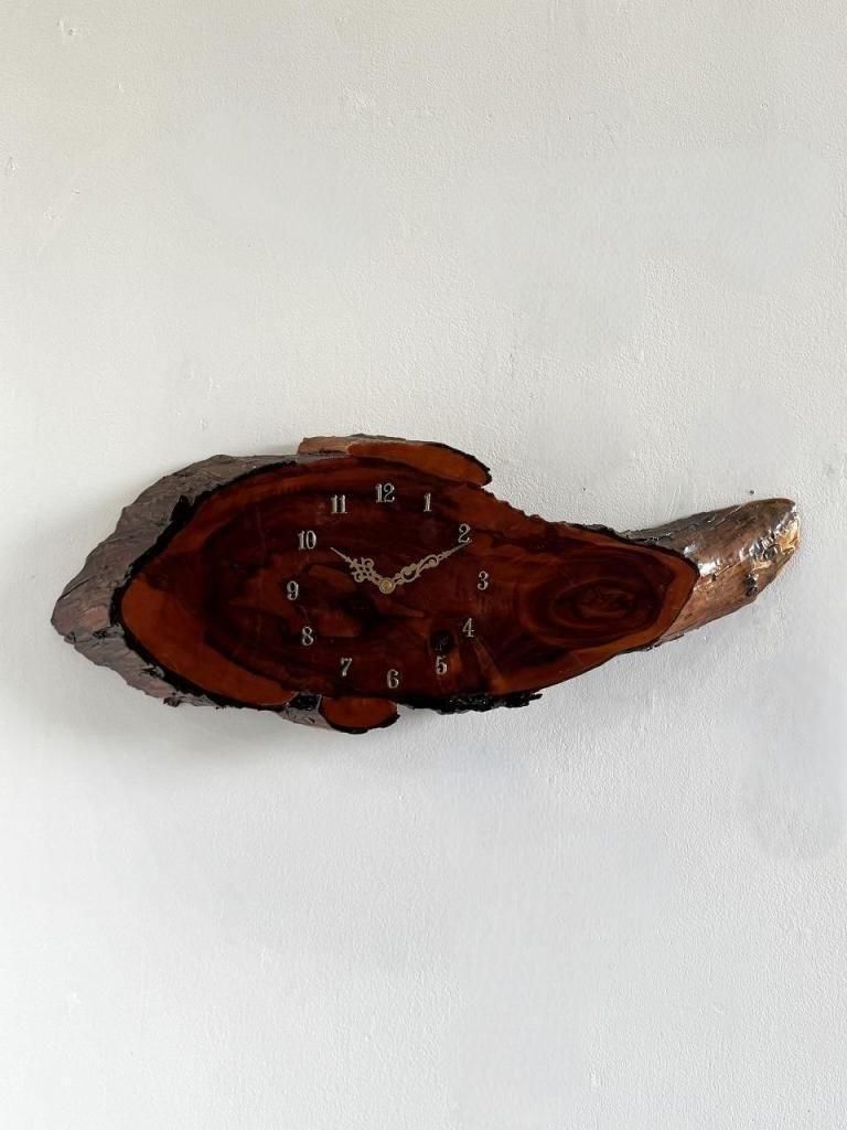 木のランダムな形も面白く素材を生かした素敵な時計です。