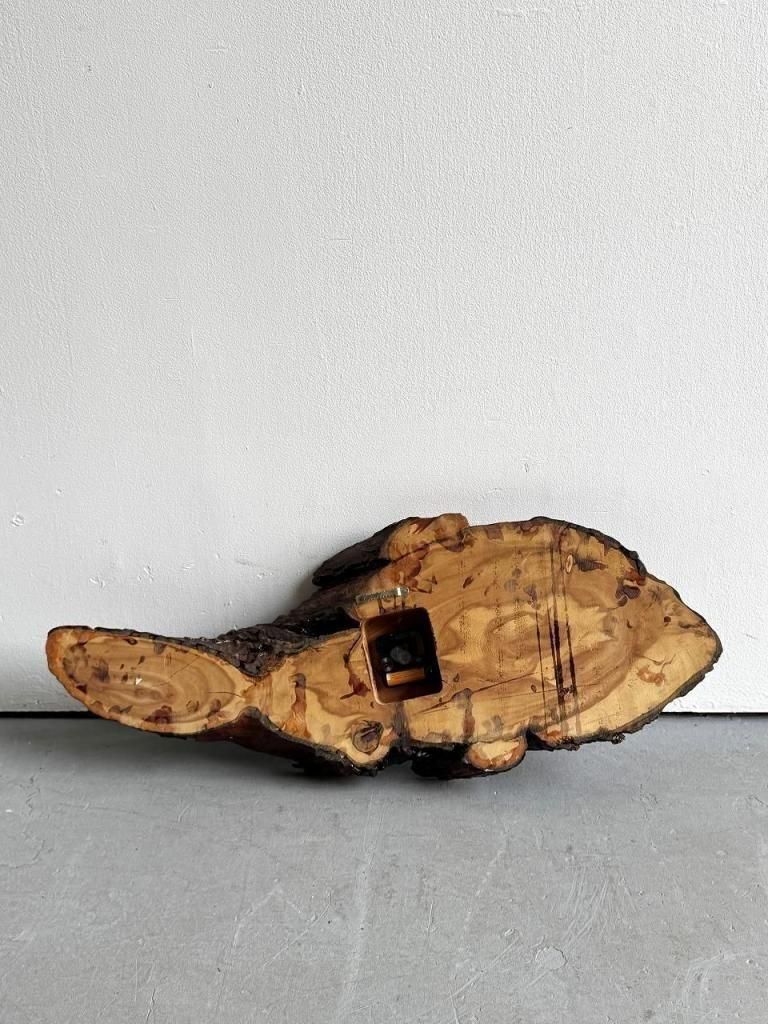 横に長いシルエットの切り株がベースになったワイルドで斬新なデザイン。