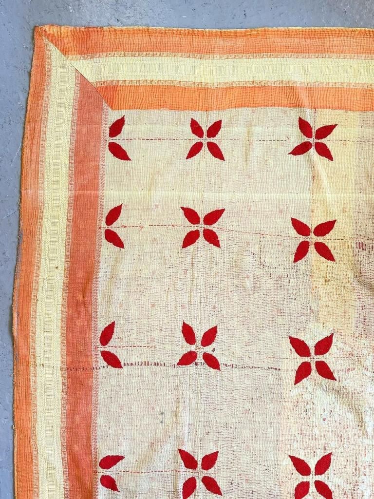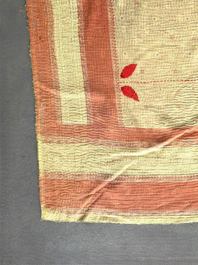 インド北部や東インド ベンガル地方(インド/パキスタン/バングラディッシュ)地方で、1針1針手作業で縫われた伝統手芸工芸 ”Khanta Quilt”です。