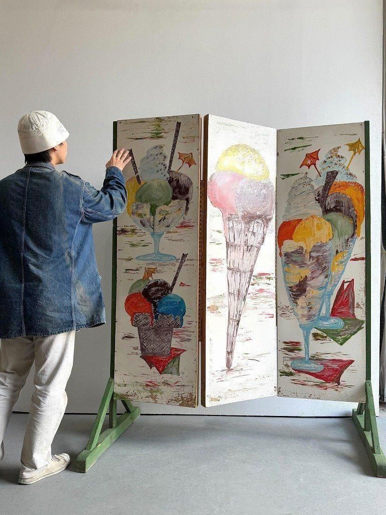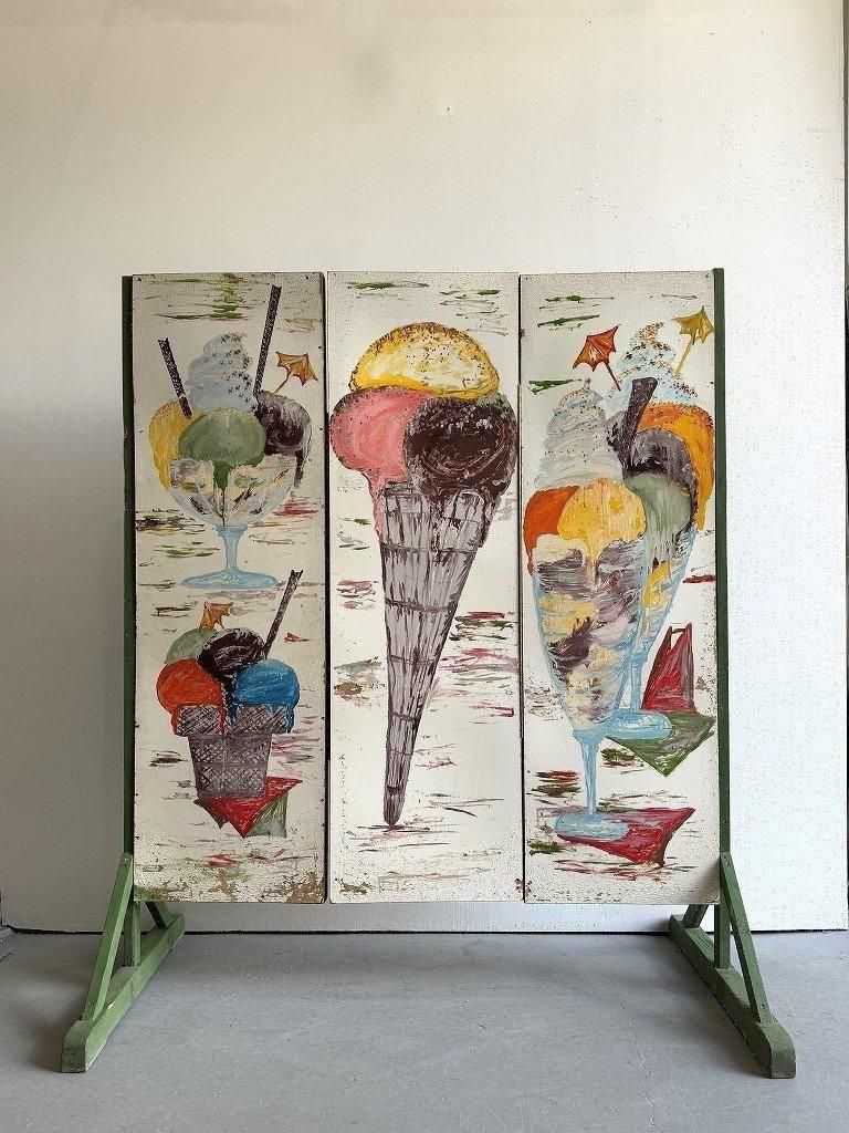 ヴィンテージ アイスクリームモチーフ ウッド パーテーション