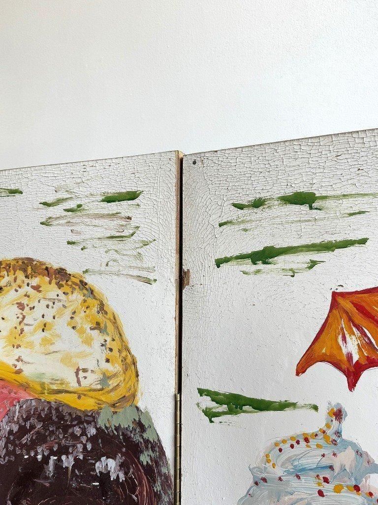 鮮やかな色使いに大胆に走った筆の跡。今にもこぼれ落ちそうな溶けたアイスクリーム。