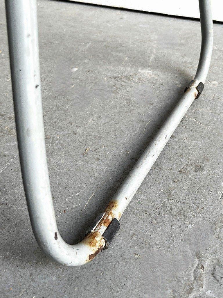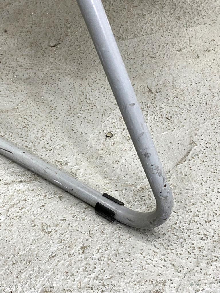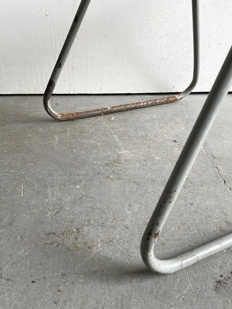 プライウッドの滑らかなシートと、グレー塗装のスチールパイプフレームによる、軽やかで機能的なデザインが特徴の一脚。