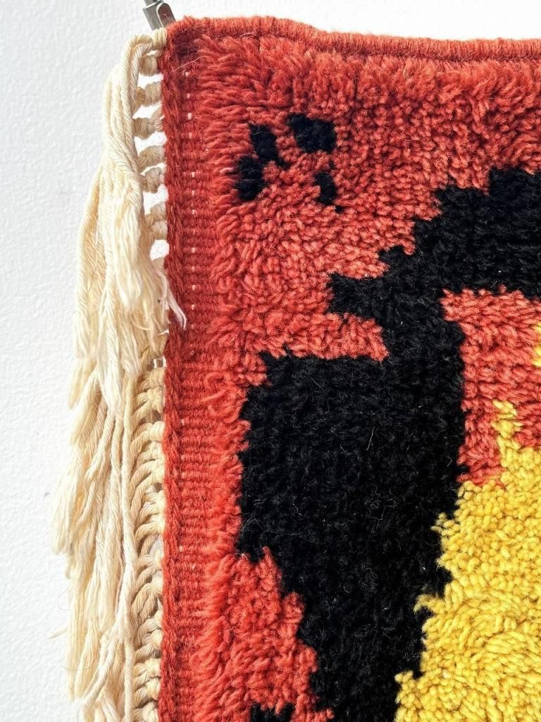 裏面にはフックが付いているため、壁掛けとしてはもちろん、床に敷いてラグとしても楽しめます。