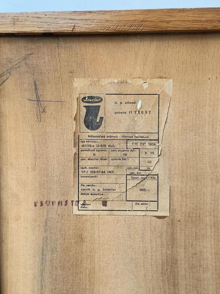 チェコスロバキア時代の国営企業 Interiér Praha(インテリア・プラハ)社 で活躍したデザイナー Jiří Jiroutek(イジー・イルーテック) による “U-458”。1958年ブリュッセル万博で評価された U-450シリーズ の一つで、直線的でシンプルな構造と高い機能性が特徴です。